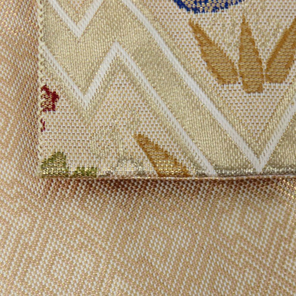 品名 【中古】 袋帯 正絹(金銀糸除く) ゴールド マルチカラー 六通柄 入子菱に菊模様 フォーマル レディース 女性