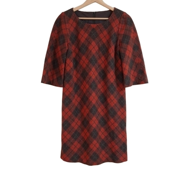 デザイン:クルーネック/七分袖/ひざ丈/チェック柄/冬