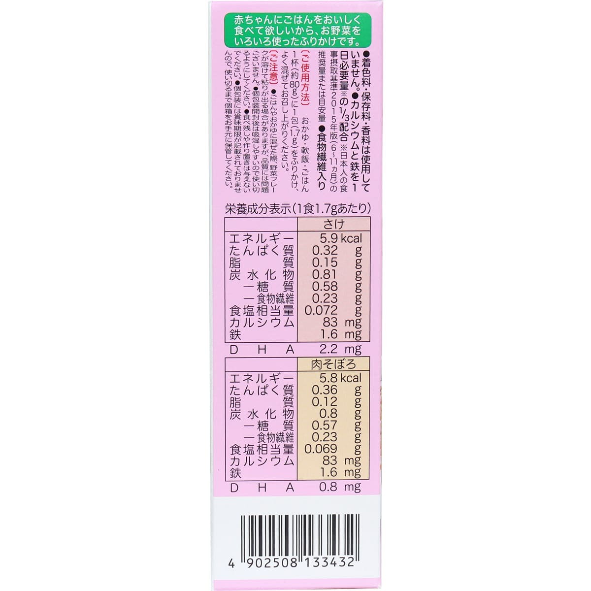 | 商品名 | ピピジョンベビーフード 5種の緑黄色野菜 お野菜ふりかけ さけ/肉そぼろ 1.7g×6包入 |