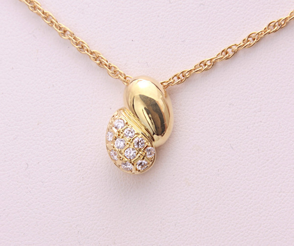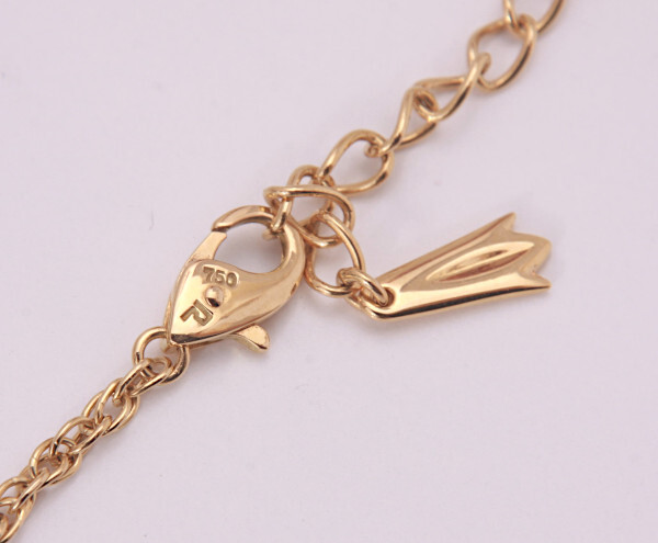 ネックレスに750、ポーラのマーク刻印が確認出来ます。