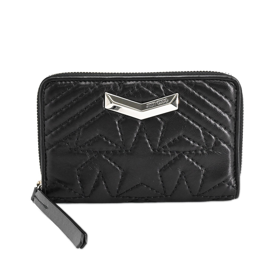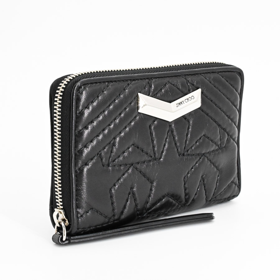 ジミーチュー ネフィルスターステッチ コンパクトジップ ミディアムウォレット ブラック レディース 中古AB品