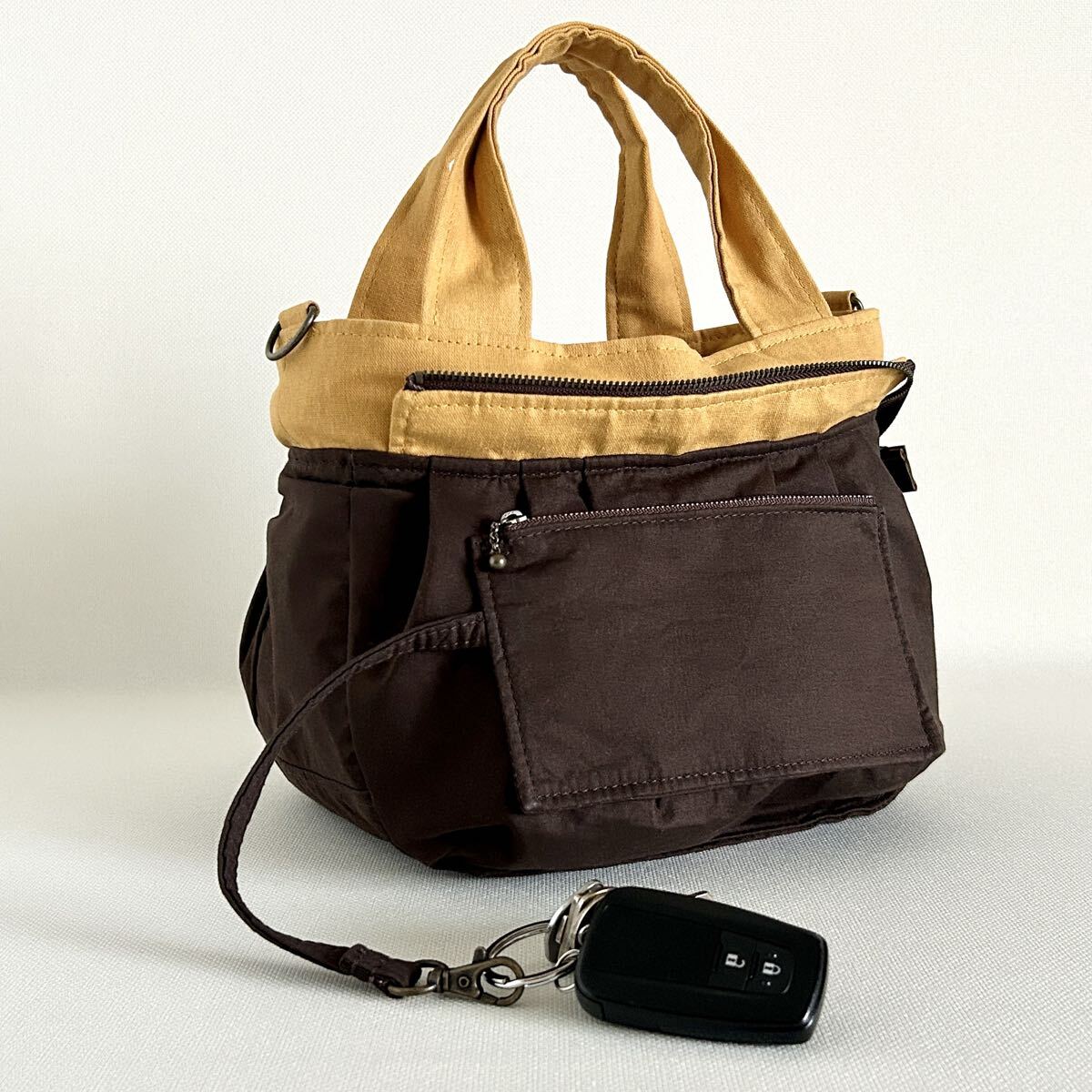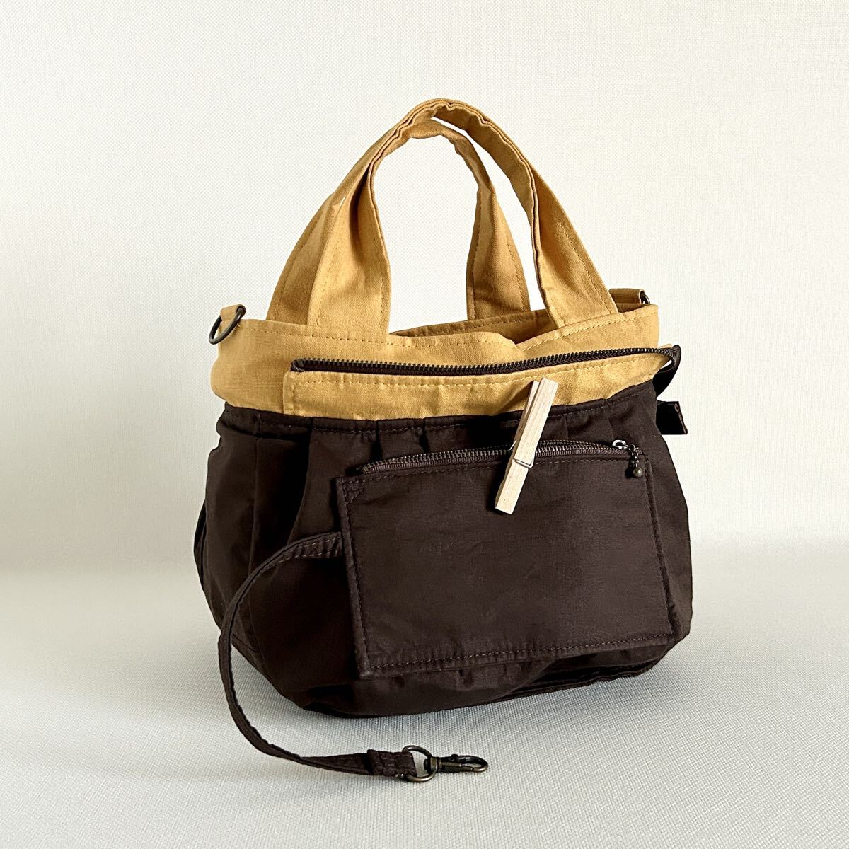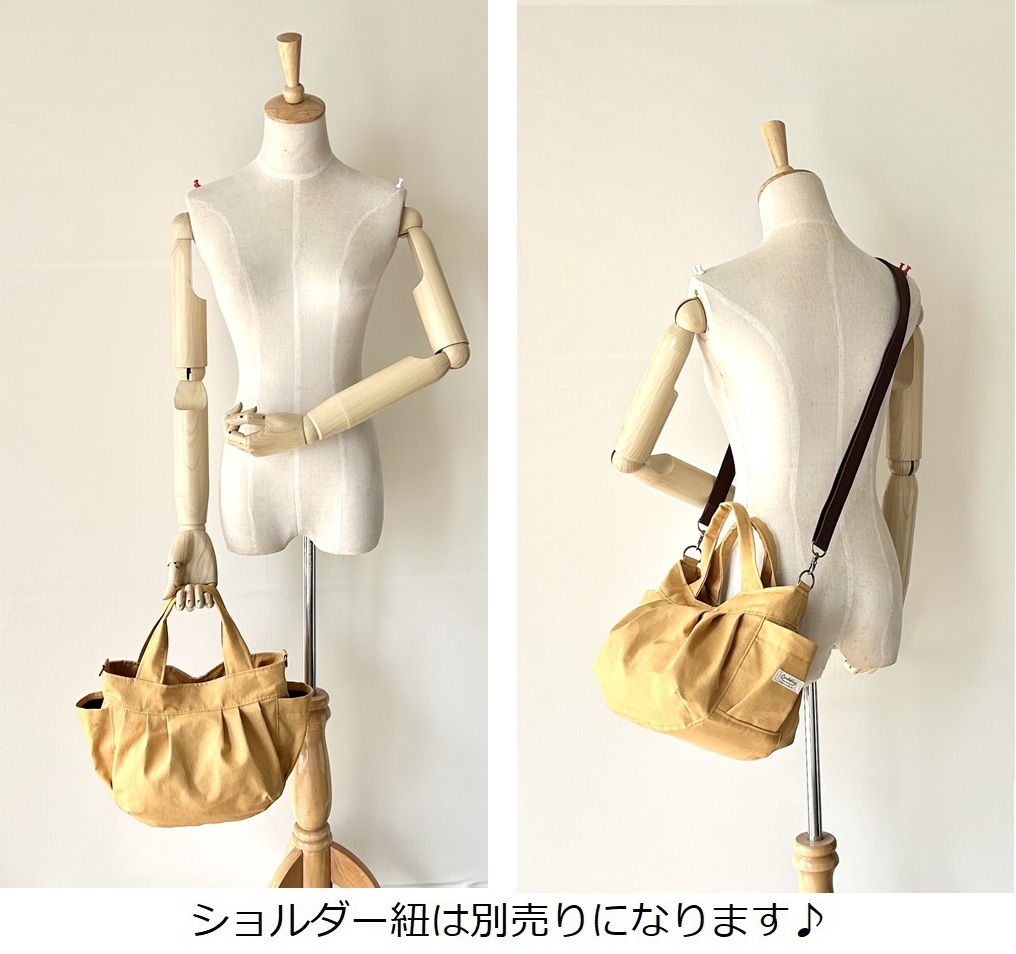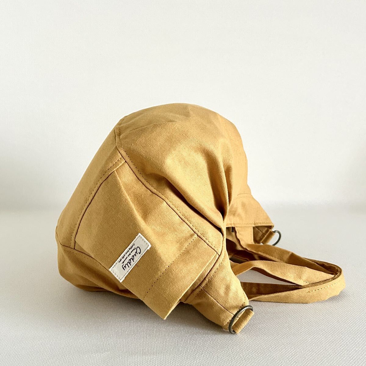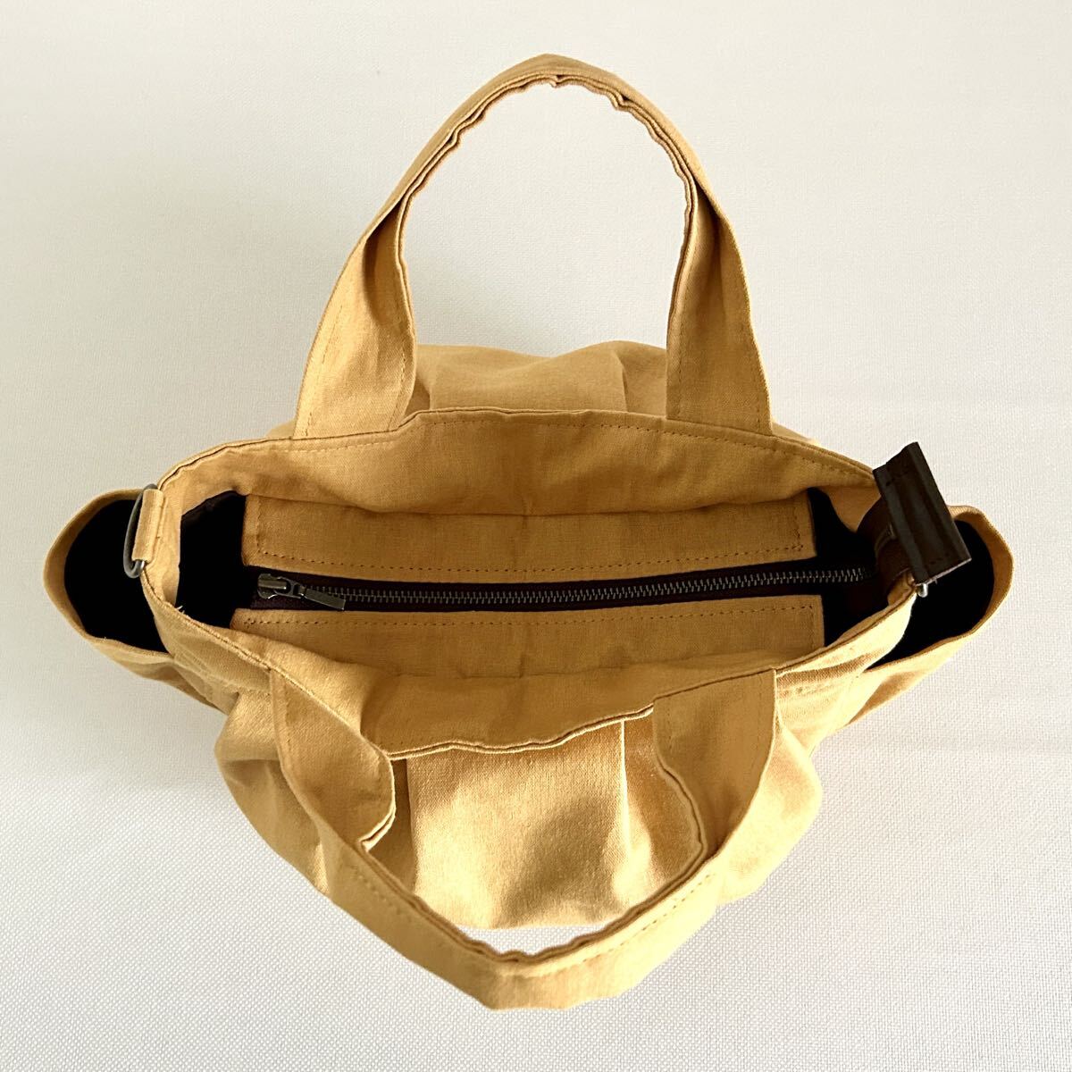 即決 ハンドメイド Sサイズ マスタード色 無地生地 綿麻 キャンバス ころりんバッグ♪