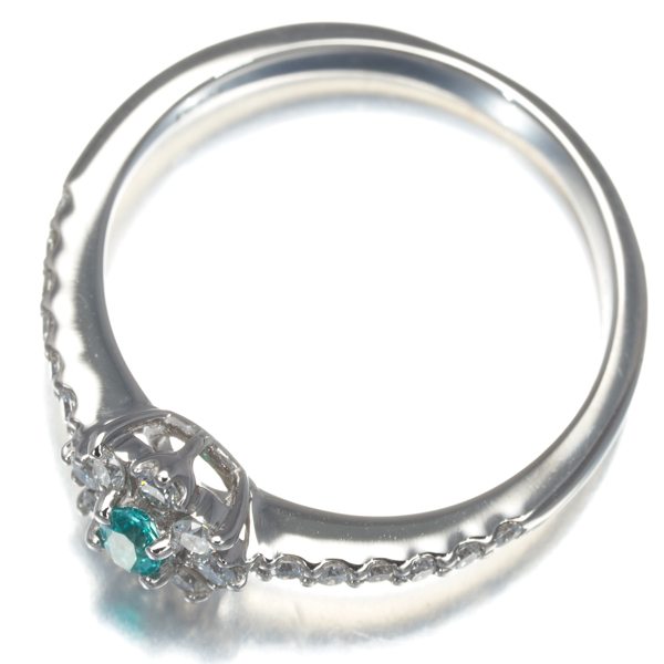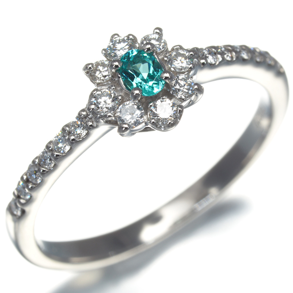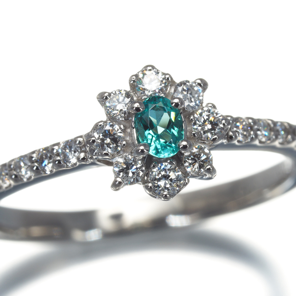 上質ダイヤモンドの繊細な輝きに囲まれた希少宝石パライバトルマリン。特有の内包物も殆ど見られない素晴らしい透明感と色鮮やかなネオンの煌めきはお手元でサイズ以上の存在感と美しさを披露してくれることでしょうね。 |