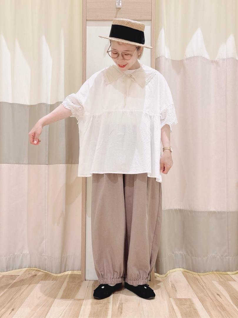 胸の下あたりの切り替えからギャザーが入りふんわり可愛らしいシルエットです。