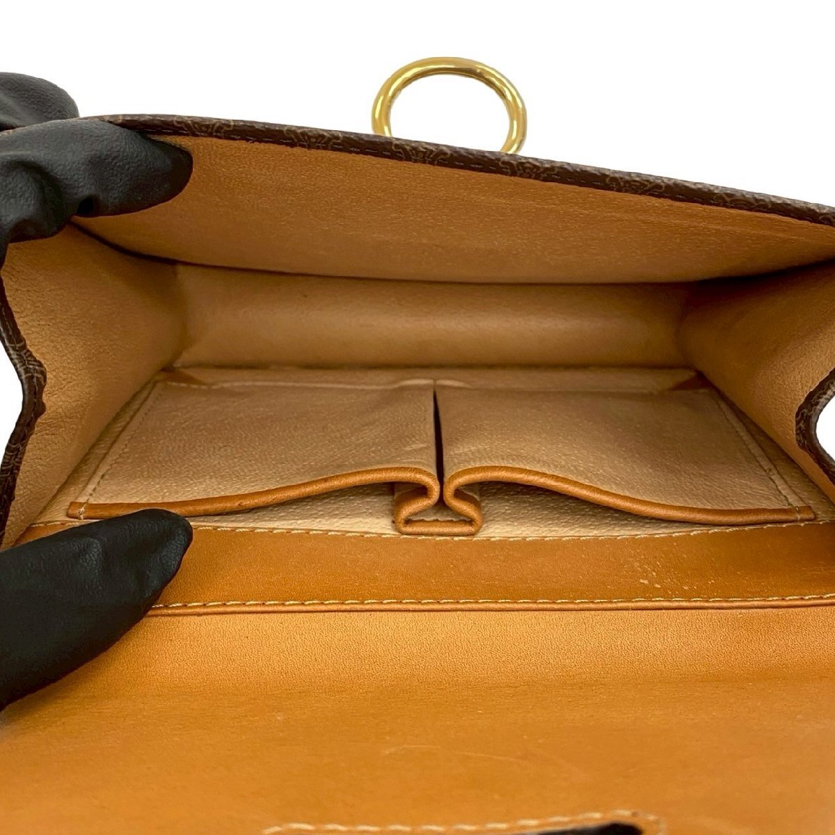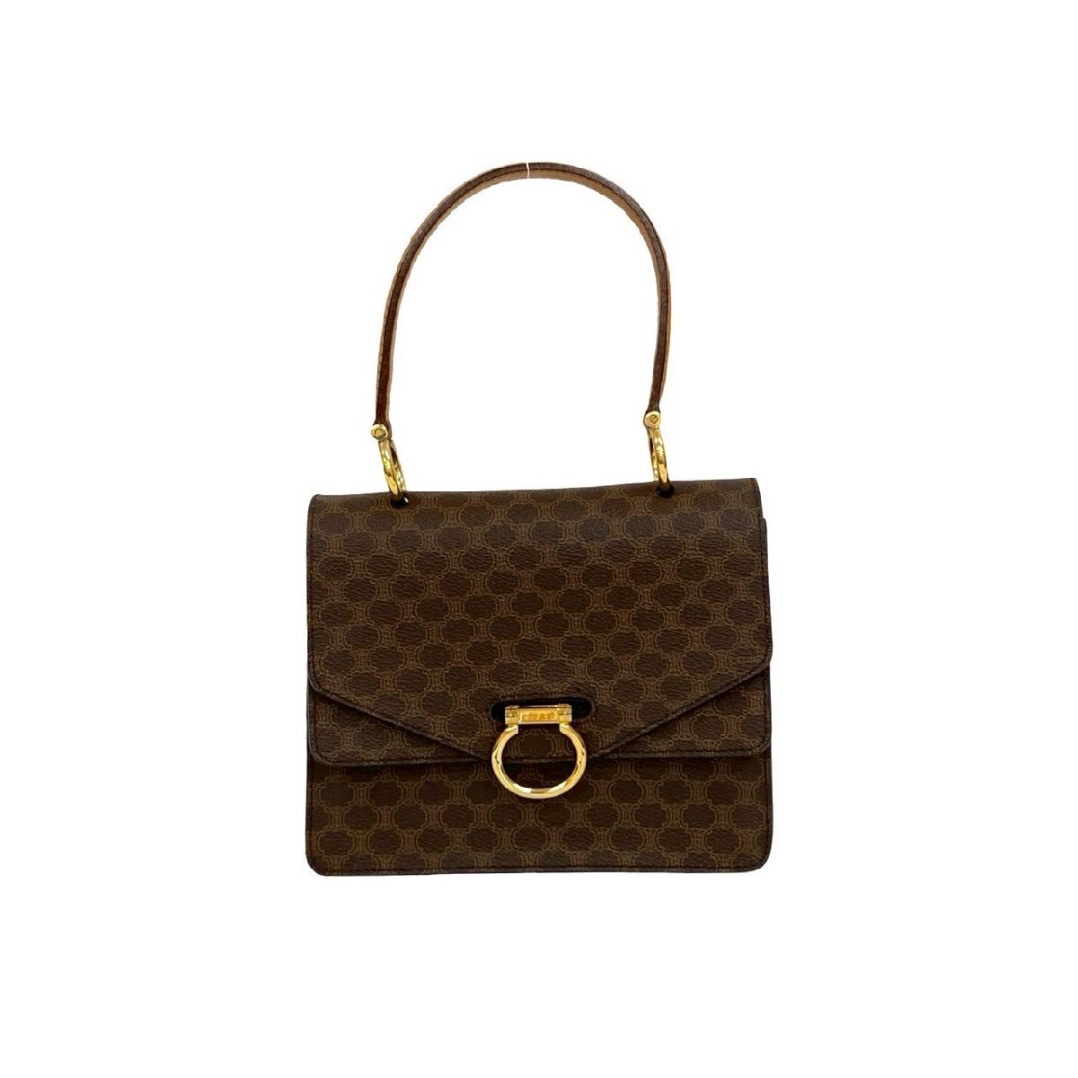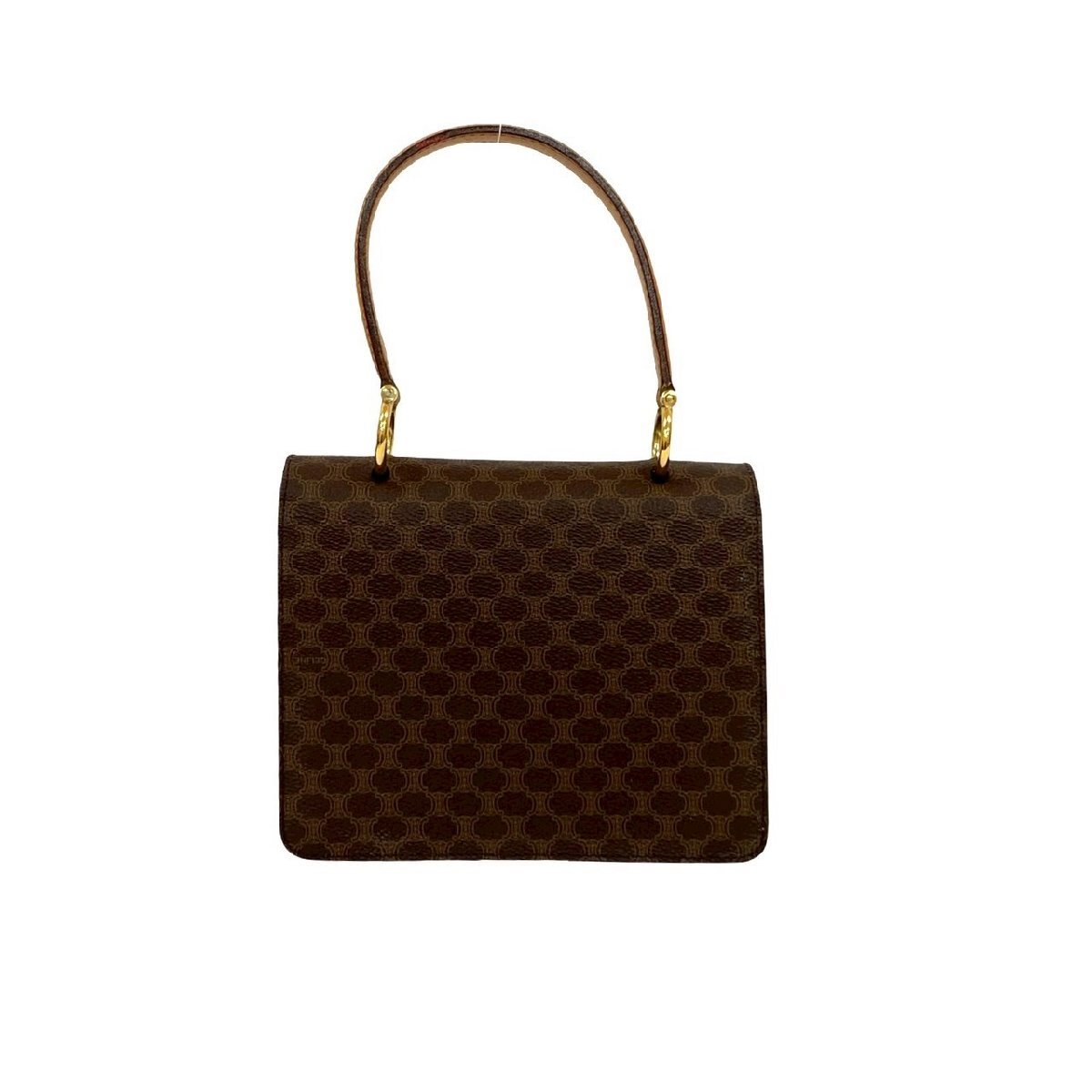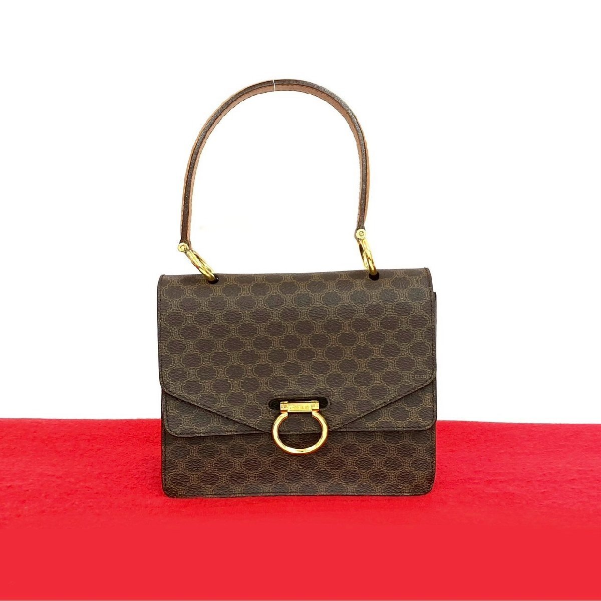 極 美品 CELINE セリーヌ ヴィンテージ マカダム ブラゾン トリオンフ 柄 ロゴ 金具 レザー ハンドバッグ ダブルフラップ ブラウン 98351