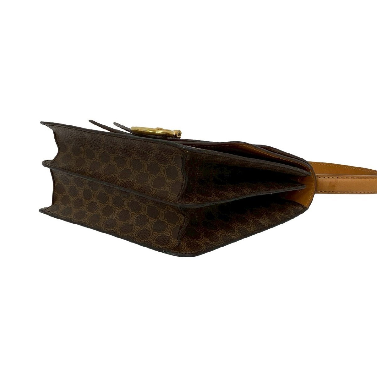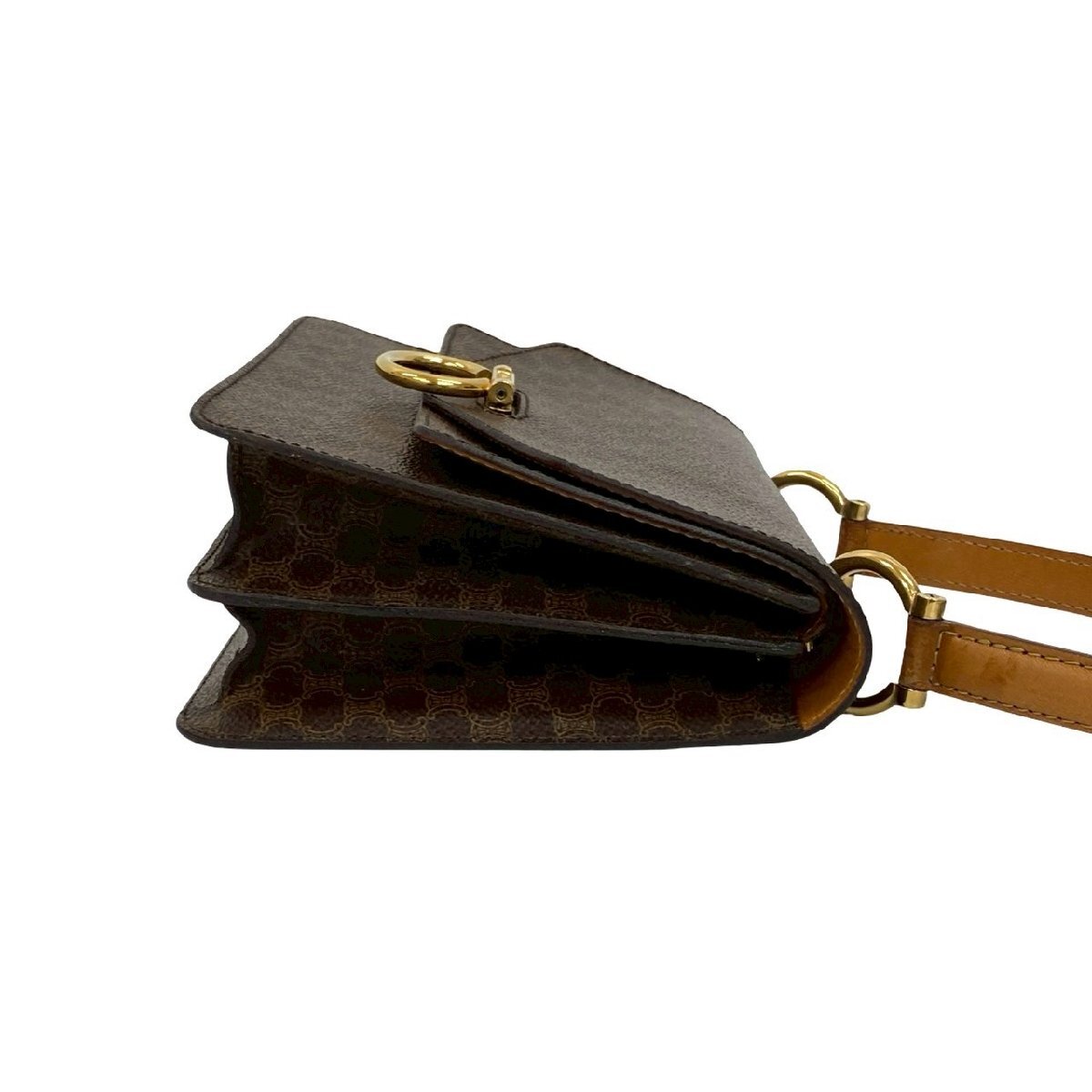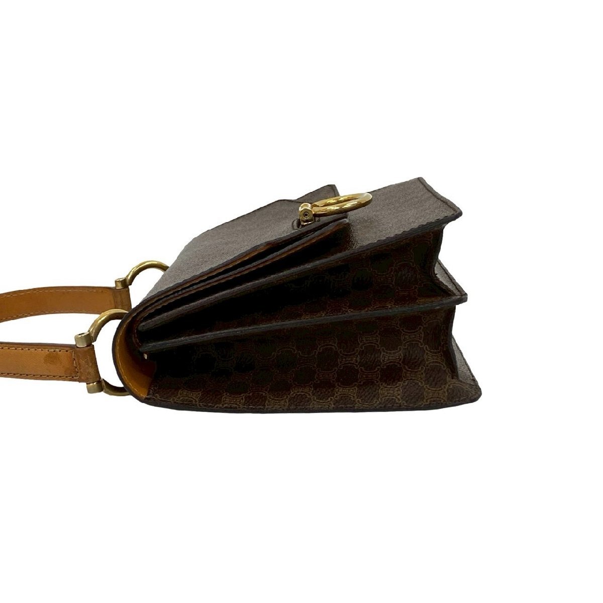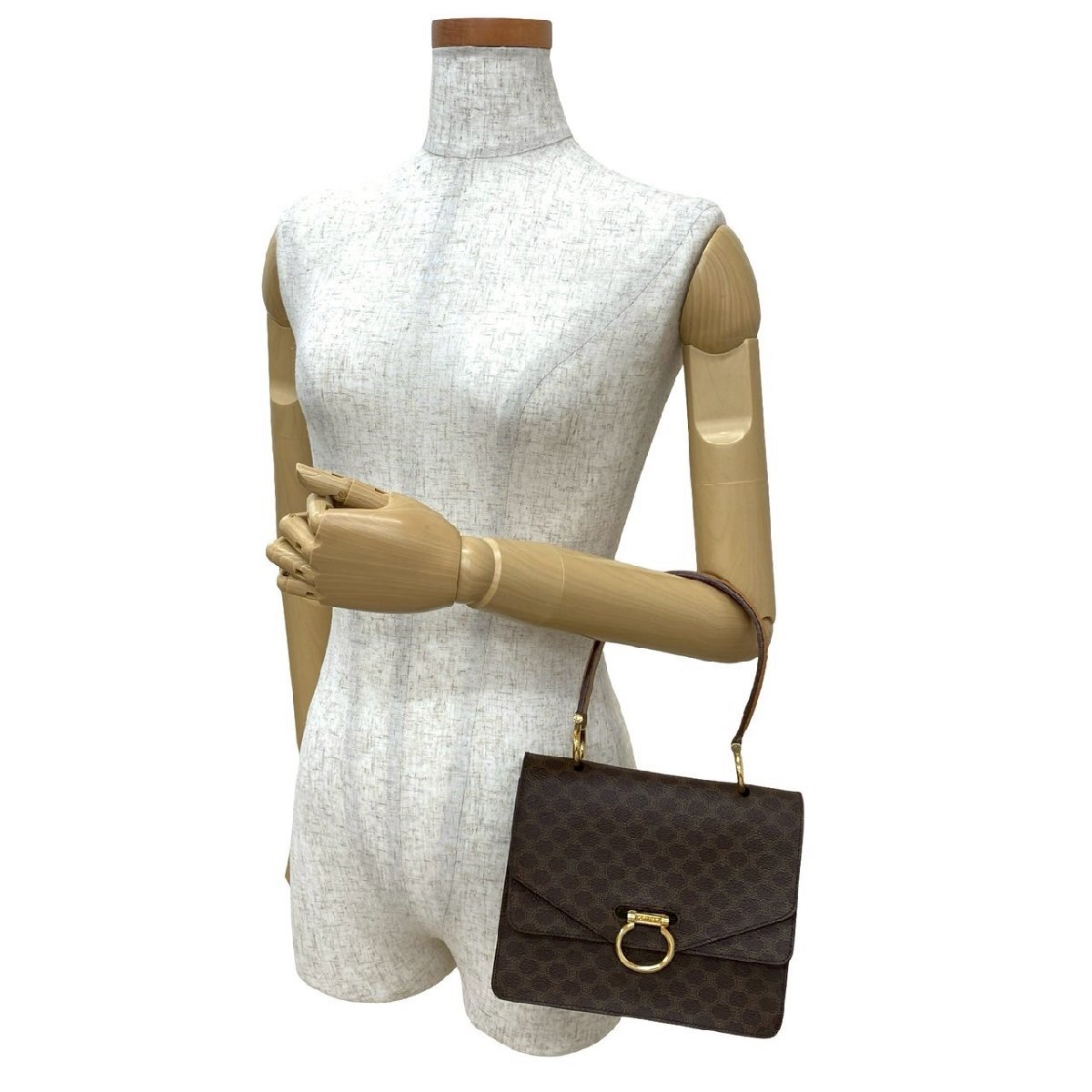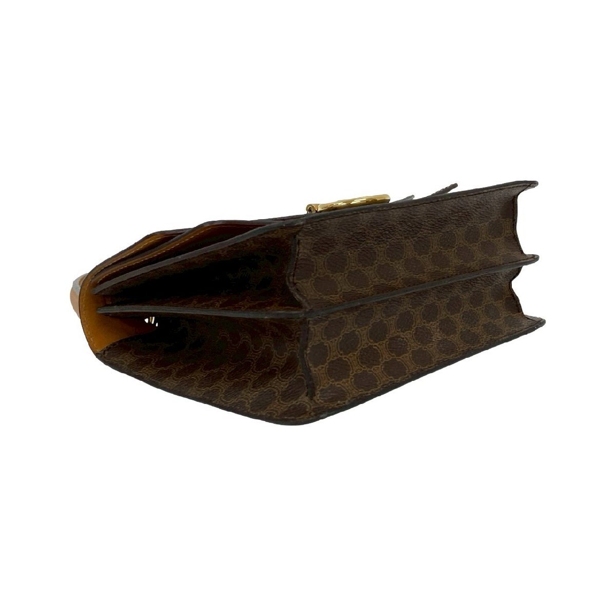 極 美品 CELINE セリーヌ ヴィンテージ マカダム ブラゾン トリオンフ 柄 ロゴ 金具 レザー ハンドバッグ ダブルフラップ ブラウン 98351