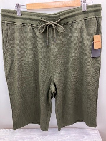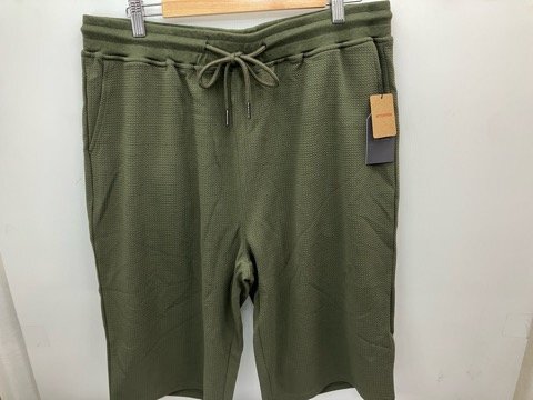 ★送料割引!大きいサイズ ショートパンツ ルームパンツ ふくれジャカードスパン 4L 実寸約98cm~128cm 緑系カーキ CUBIC MEASURE★未使用格安!