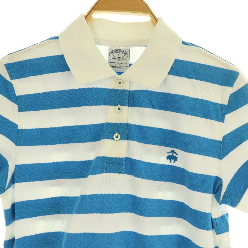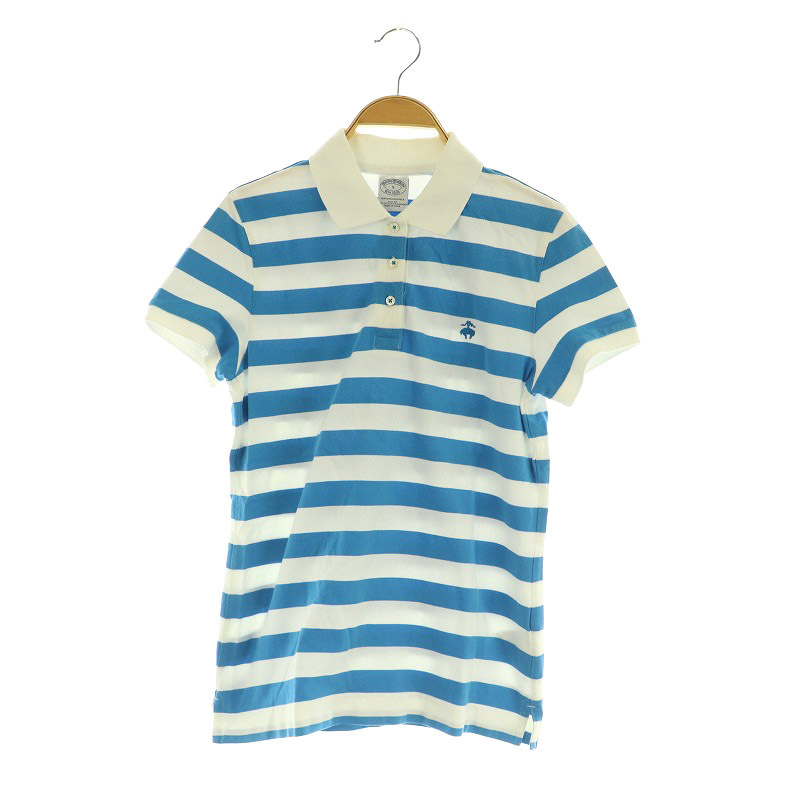 ブルックスブラザーズ BROOKS BROTHERS ポロシャツ 半袖 ボーダー S ブルー /MY ■OS レディース