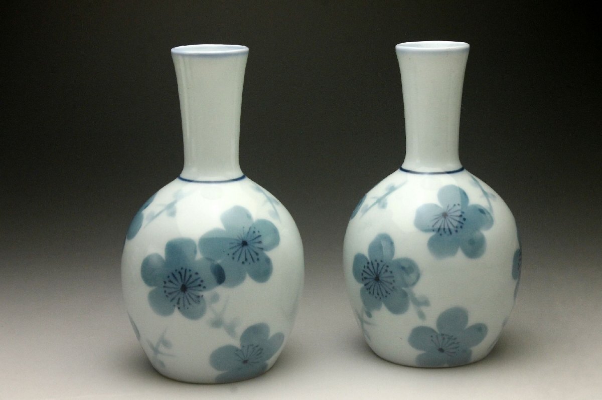 【余韻】 有田焼 松泉銘 染付枝梅文 酒器揃(7点)★徳利一対 盃5客 共箱 無傷美品<同梱可>