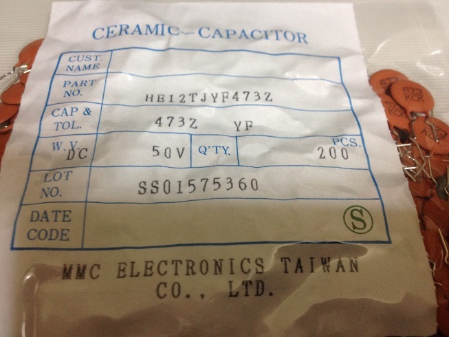 円板型セラミックコンデンサ HE12TJYF473Z YF特性 50V 0.047μF 20個