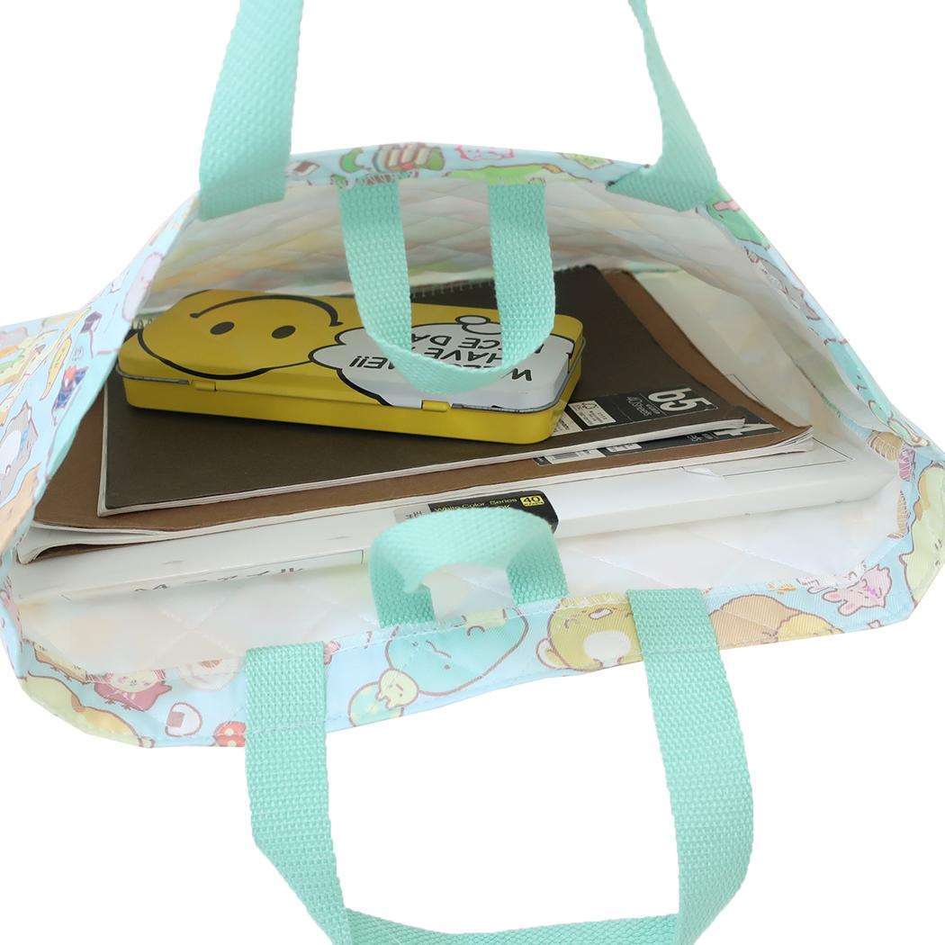 新入学 新入園にぴったりなかわいいスクール雑貨シリーズ サンエックスの大人気キャラクター[すみっこぐらし]の可愛らしいスクール雑貨シリーズこちらはジュニアのお稽古かばんにちょうどいい[キルティングレッスンバッグ]キルティング素材のママの手作り風がとってもかわいいバッグの底が床につかないように内側に机がけ用の紐が付いていて使いやすい学校でのサブバッグ、習い事や塾に行くときに使うバッグとしてぴったりのサイズ他にも同柄の雑貨いろいろあるので揃えて使うとさらにかわいいよサイズ:約390x310mm素材:ポリエステル