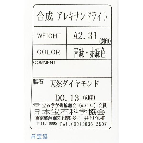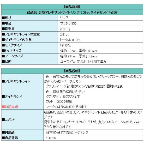 商品名:合成アレキサンドライト リング 2.31ct ダイヤモンド Pt950 | |