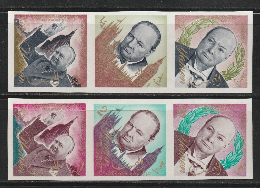(イエメン)1965年チャーチル無目打ち6種完、マイケルカタログ評価28ユーロ(海外より発送、説明欄参照)
