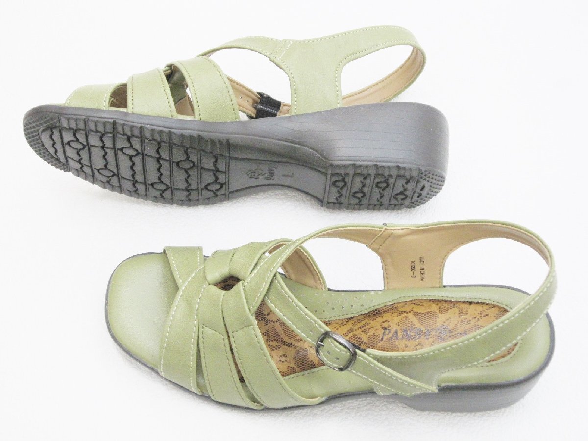 | ♪♪♪ 商品の詳細案内 ♪♪♪ | ★Pansy パンジー 甲ベルト 調節可能 穴あきタイプ ゴム使い 人気 レース素材【婦人 レディース】Laサンダル KAKI 24.0cm/L 7フ |