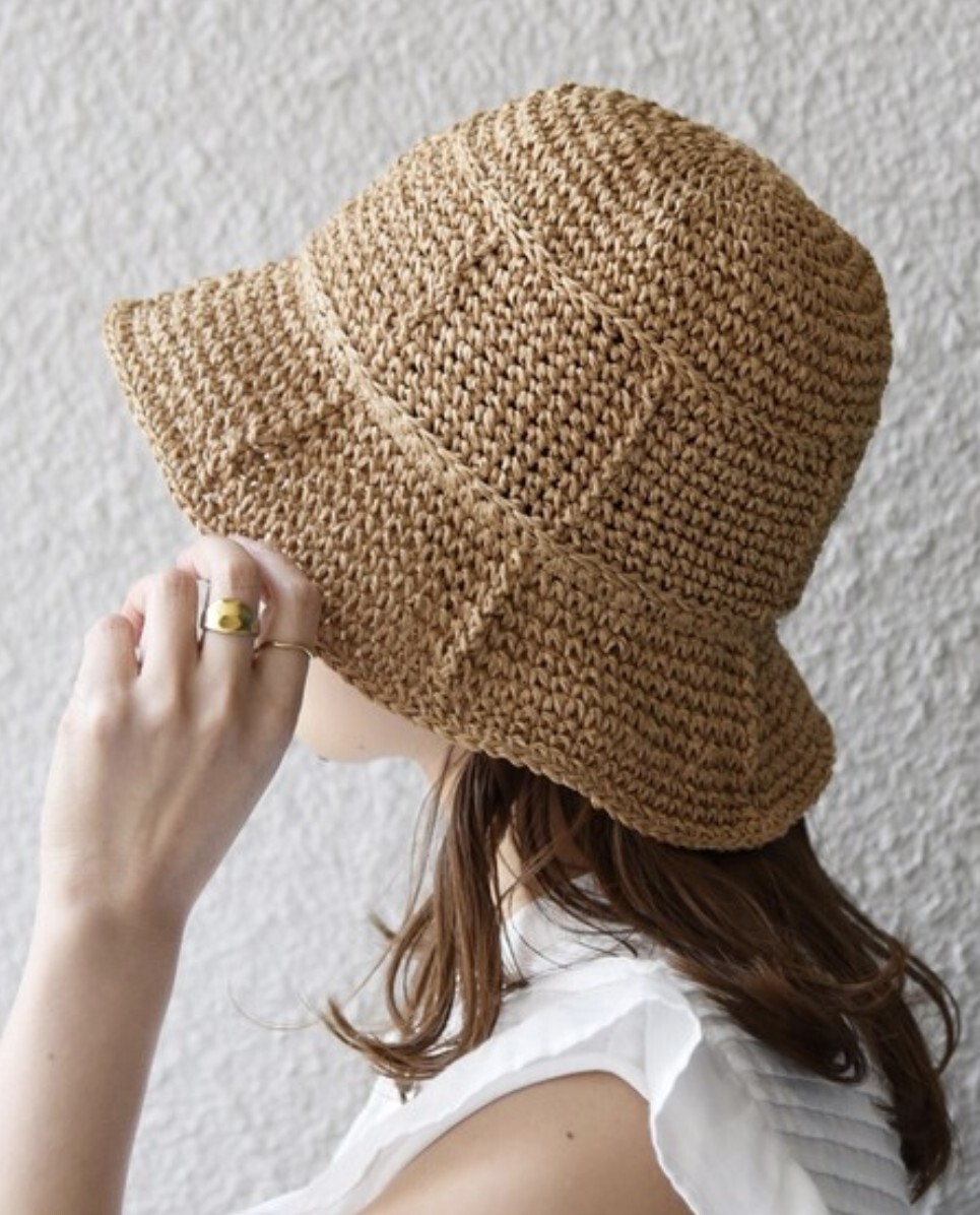 トレンドのバケット型に夏らしいペーパー素材を使用したアイテム。