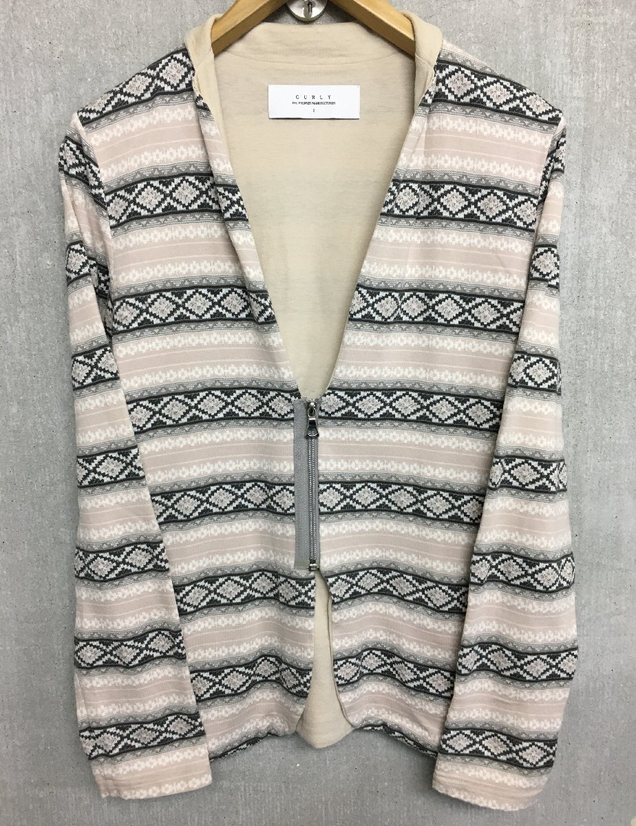 ◆CURLY カーリー 民族柄 ジャガード 天竺 ジップ カーディガン ベージュ サイズ2 美