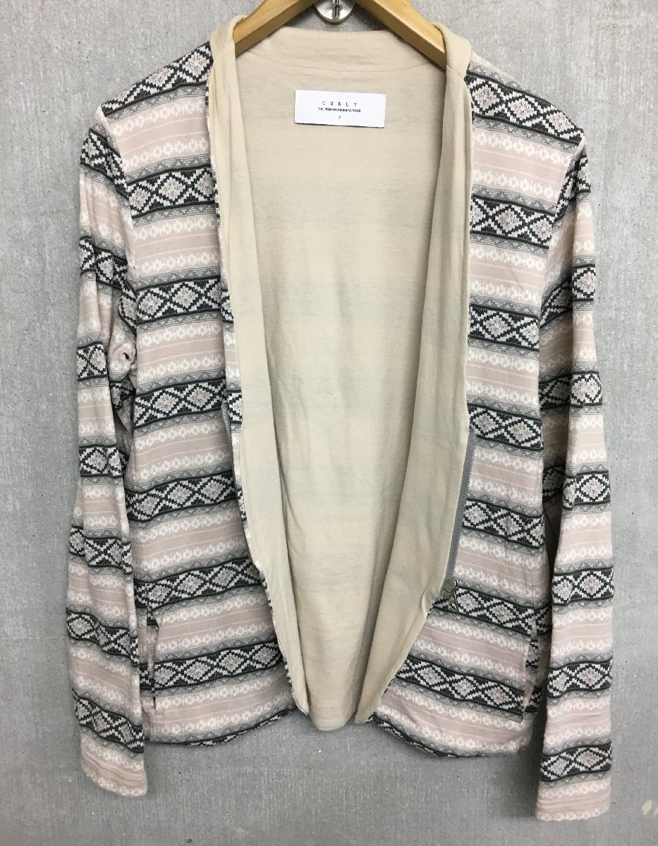 ◆ ◆CURLY カーリー 民族柄 ジャガード 天竺  ジップ カーディガン ベージュ サイズ2 美