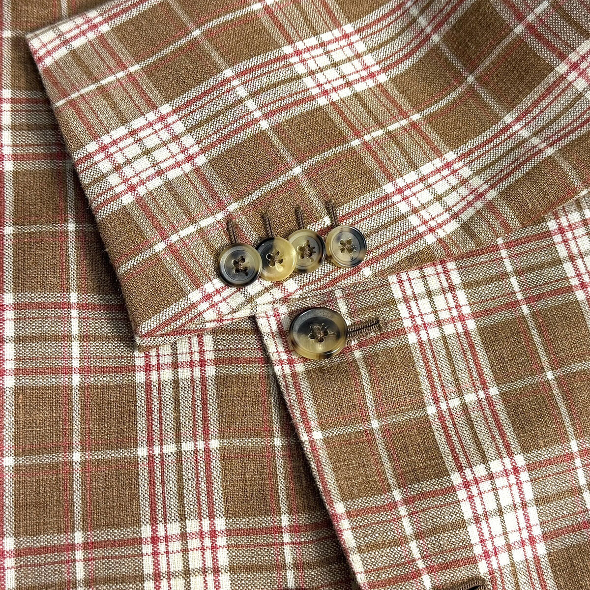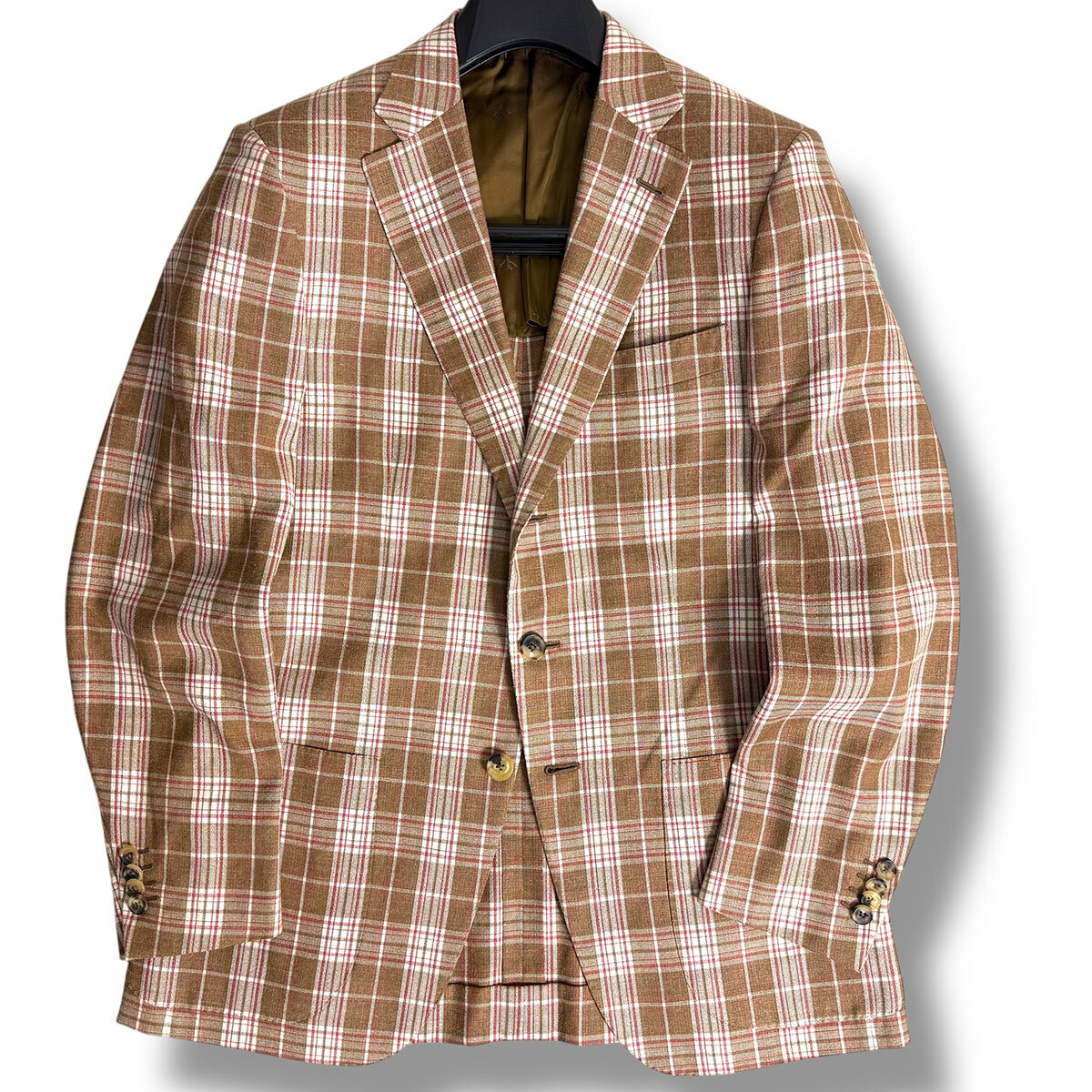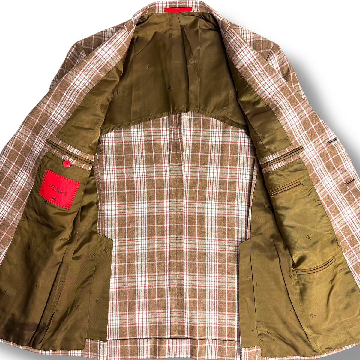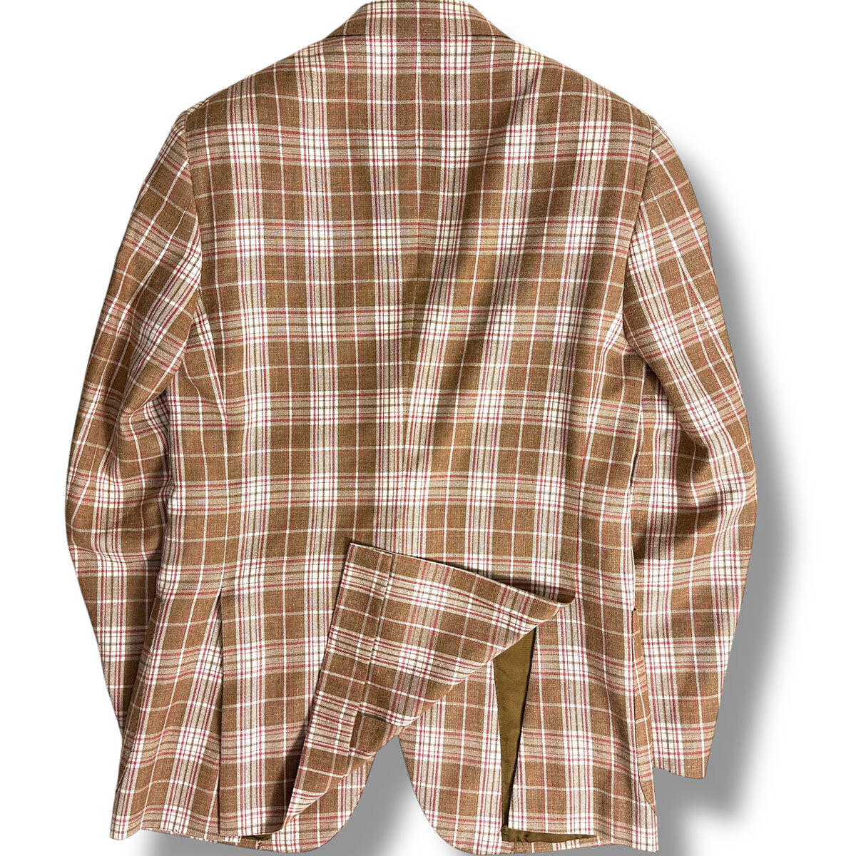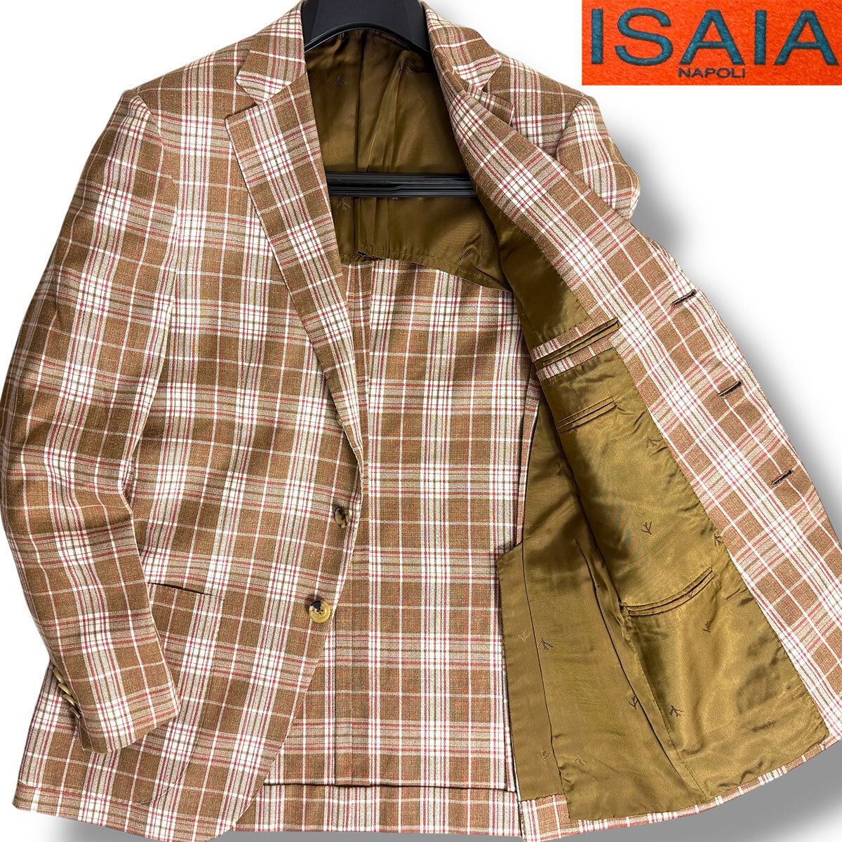 J6356 未使用 イザイア GREGORY シルクリネン チェック柄サマージャケット ブラウン 46 ISAIA