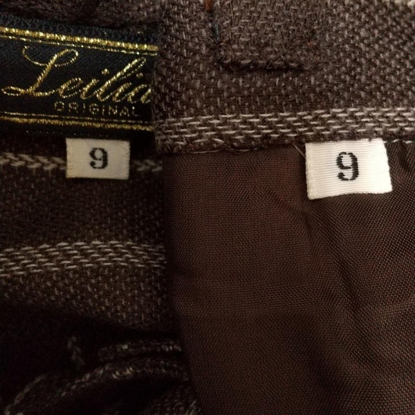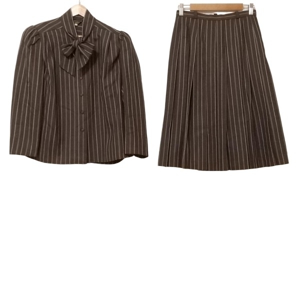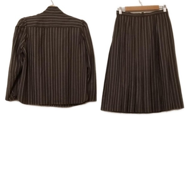 レリアン Leilian スカートスーツ - ダークグレーカーキ×白 レディース ストライプ/肩パッド 美品 レディーススーツ
