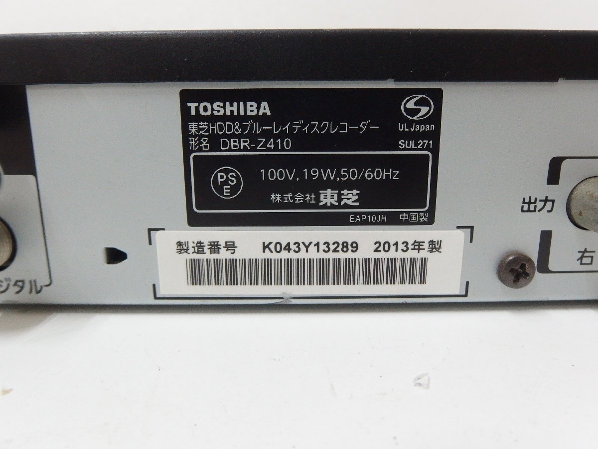 10▲/Zク5288 TOSHIBA 東芝 HDD&BDレコーダー DBR-Z410 2013年製 故障品 ジャンク 保証無し