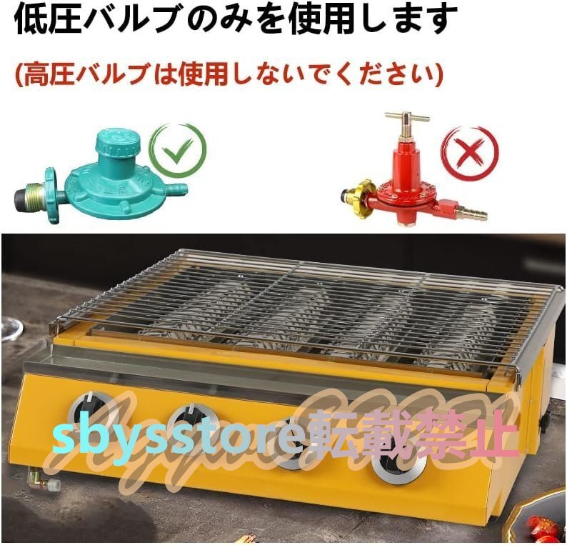 5、注意事項:石炭ガスストーブの燃料として、石炭ガスのみ適用可能です。天然ガスストーブの燃料として、天然ガスのみ適用可能です。人工ガス(バイオガス)は使用できません。 天然ガスは石炭ガスに比べて濃度が低いため、天然ガスを石炭ガスストーブに使うと、火力が相対的に小さくなり、加熱不足になる場合があります。石炭ガスを天然ガスストーブに使うと、火力が大きすぎる恐れがあります。ガスバーベキューコンロのガス継手、異なる空間に応じて設置位置を調節でき、取付が非常に便利。バーベキューコンロは2800 PA低圧弁通用、中高圧または大圧力の使用は厳禁、さもなければバーナーが損壊し、火が点かないまたは自動消火現象が発生する。