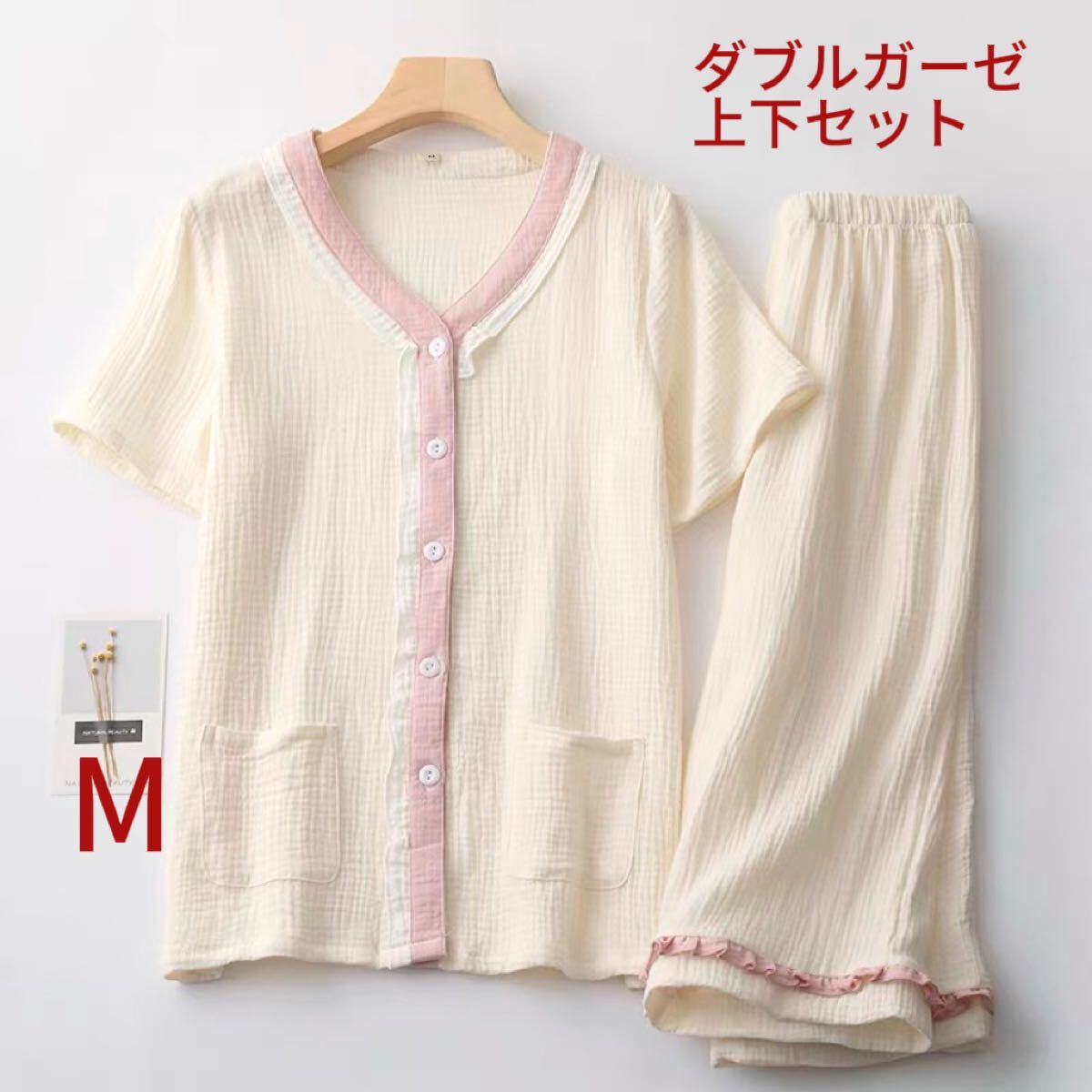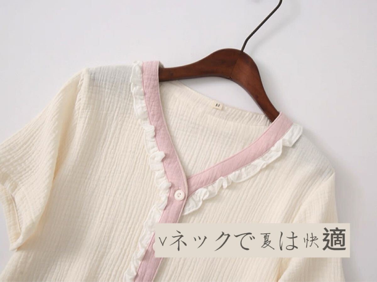 通気性抜群のダブルガーゼ素材で仕立てた、肌にやさしいパジャマ上下セットです。暑い季節にも快適に過ごせる、ふんわり軽い着心地が魅力です。