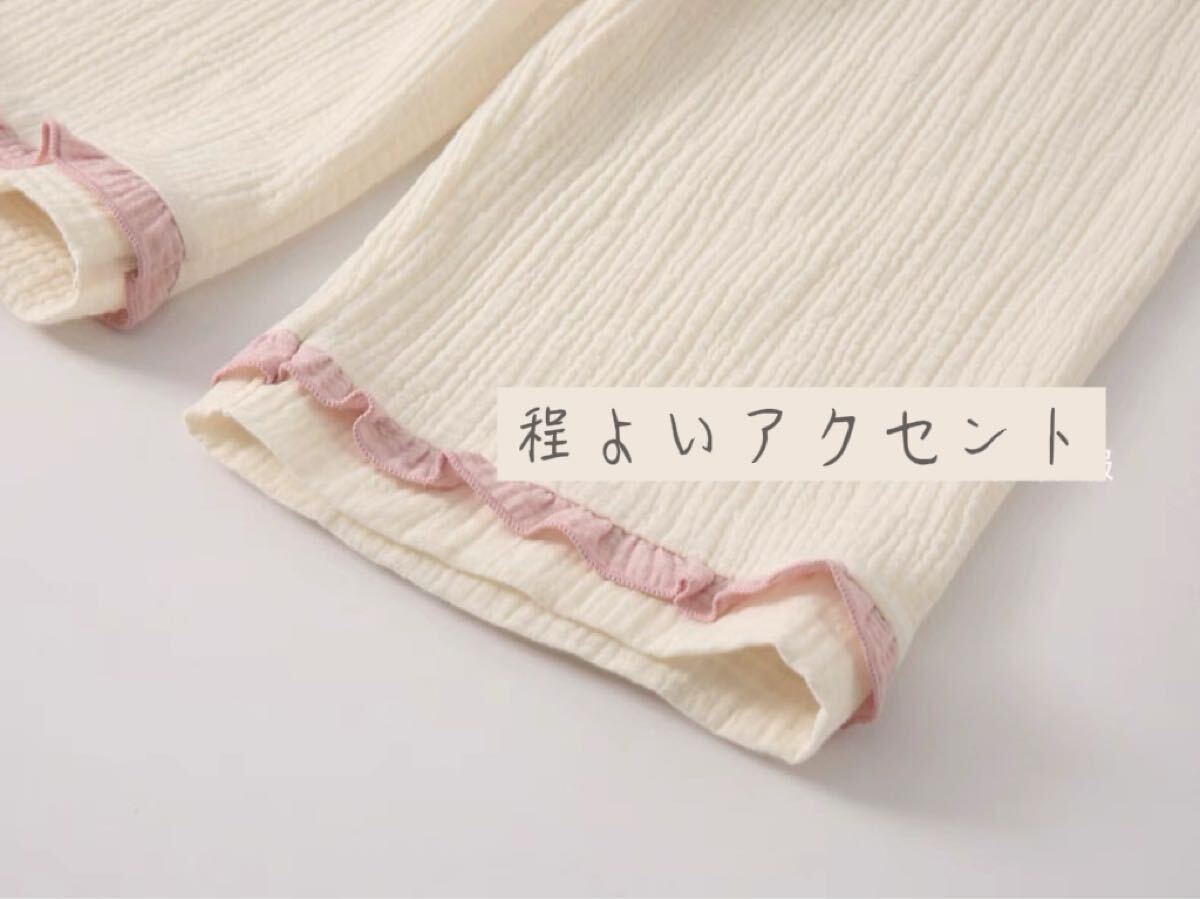 ・パンツ裾のフリルでさりげない可愛さを演出