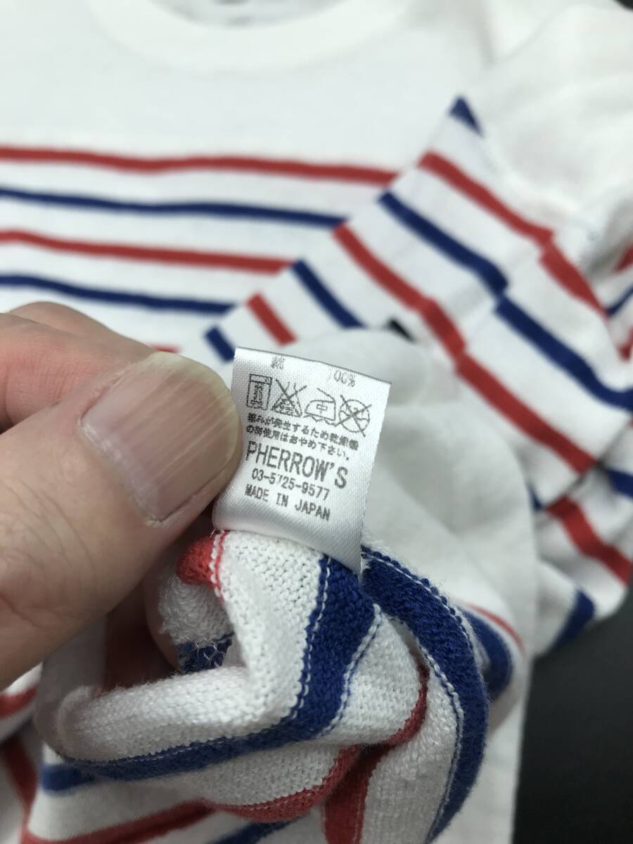 【日本製】PHERROW'S 七分袖フェローズボーダーTeeシャツ ステンシルプリント 海軍