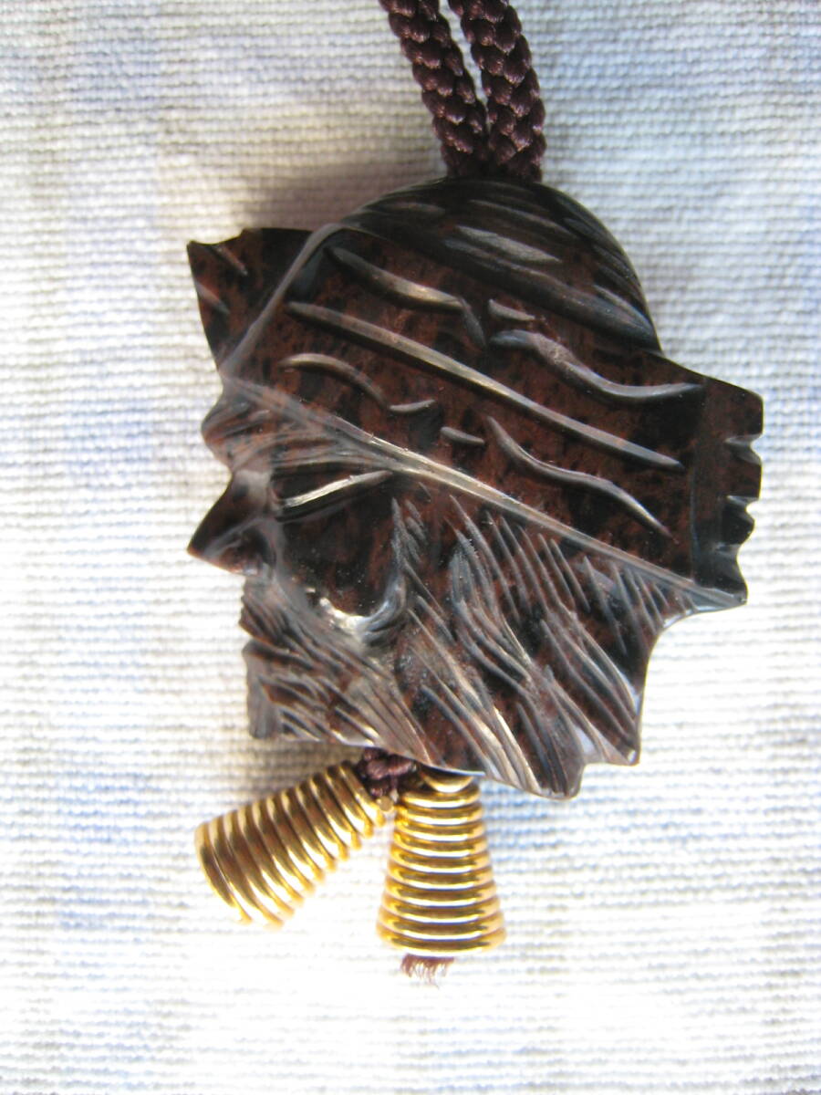 アイヌ両面彫りペンダント付きループタイ 未使用品