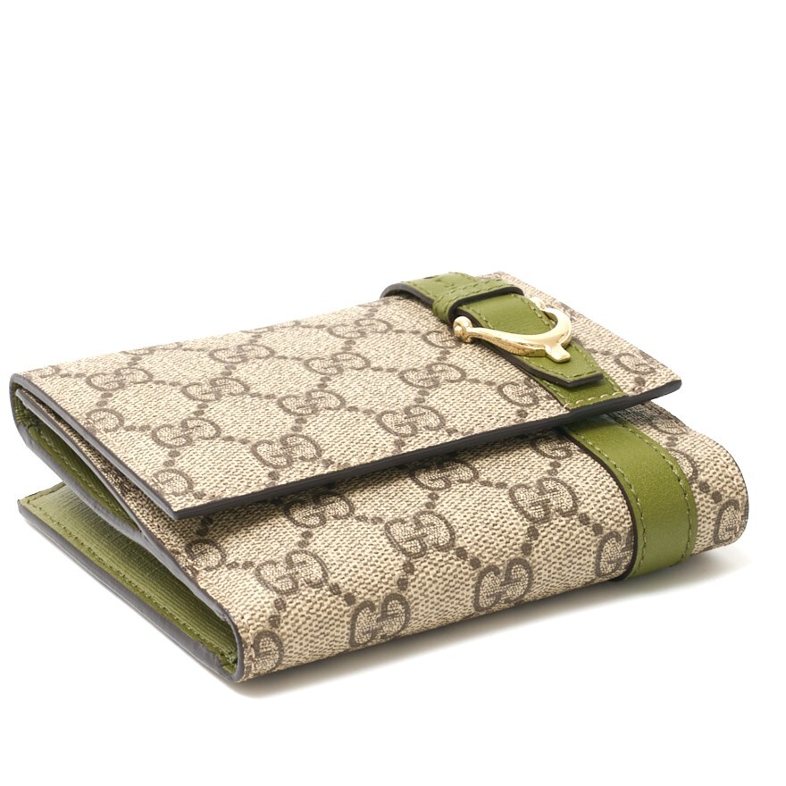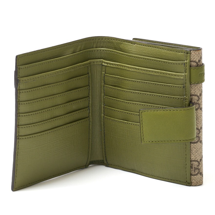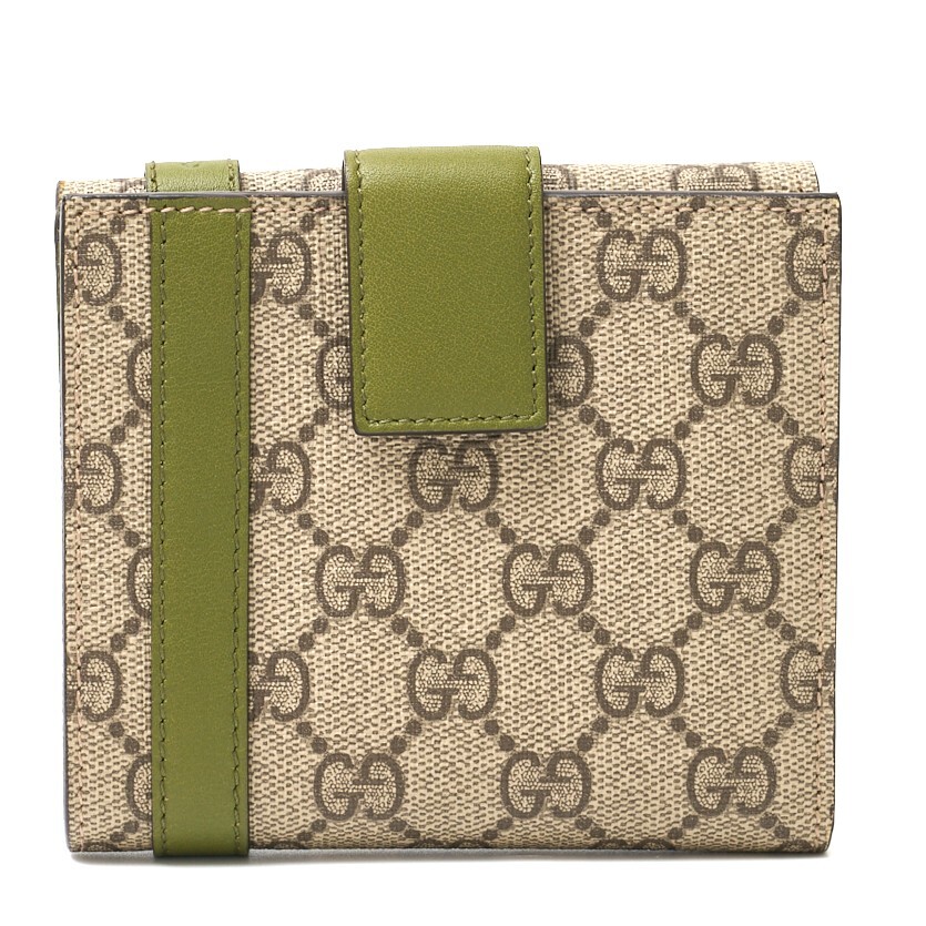 GUCCI グッチ GGスプリーム 2つ折り財布 309755 ミニ コンパクトウォレット レザー ベージュ×グリーン×ゴールド ユニセックス
