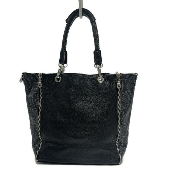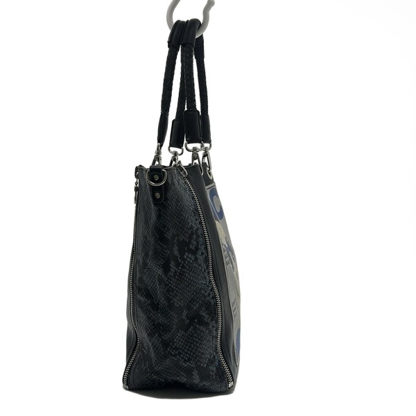 バーバラリール barbara rihl トートバッグ - レザー 黒×ブルー×マルチ バッグ