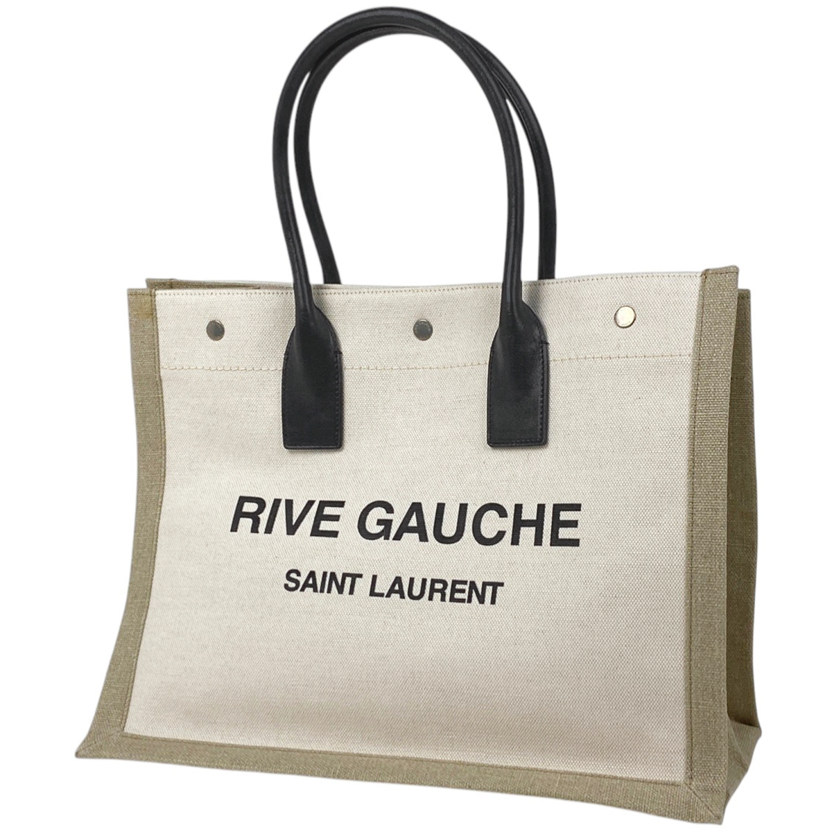 サンローラン SAINT LAURENT リヴ ゴーシュ トートバッグ ロゴ ハンドバッグ トートバッグ キャンバス ベージュ ブラック 617481 レディース 【中古】 |