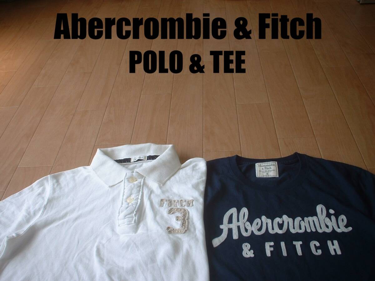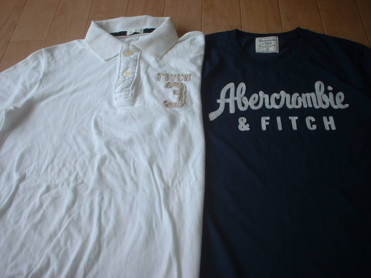 即戦力2着セットAbercrombie & Fitchワンポイントロゴポロシャツ&ビッグロゴワッペンTシャツMアバクロンビー&フィッチ白ホワイト紺ネイビー