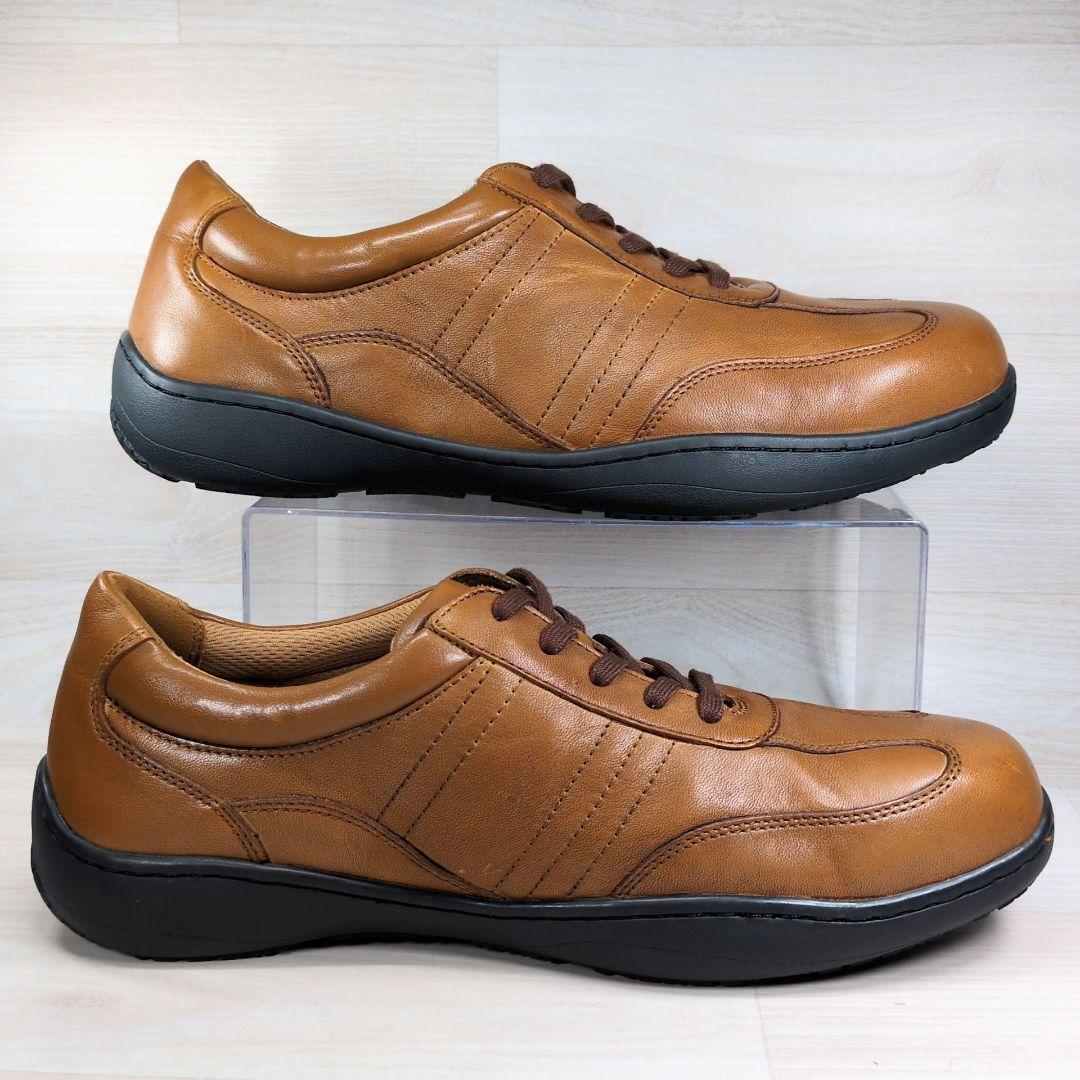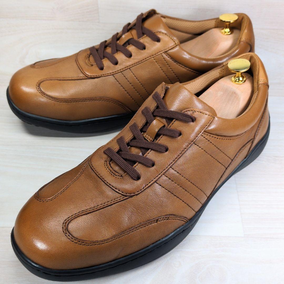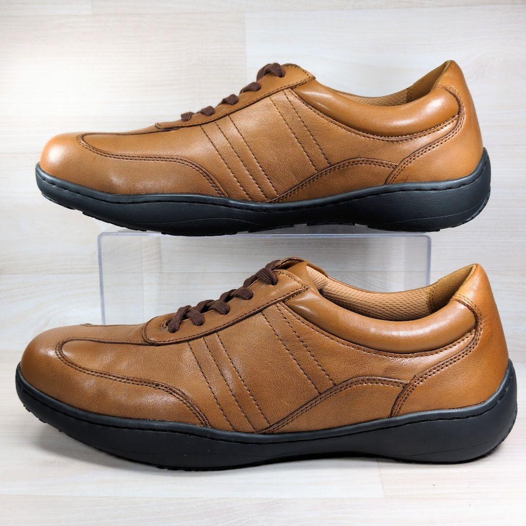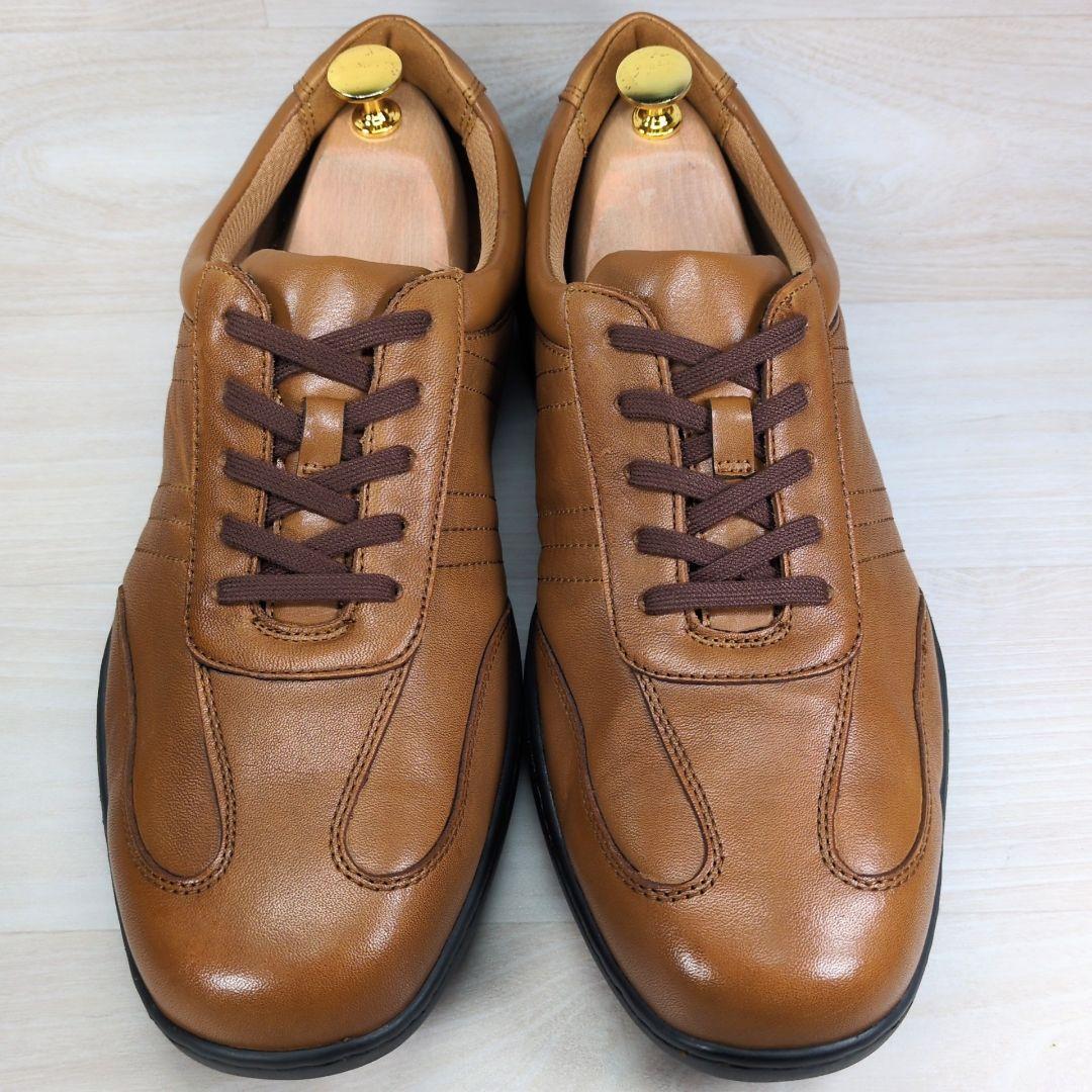 ホーキンストラベラーのレザーシューズです。中敷きの枚数で4E5Eとワイズの調整ができる幅広足の方におススメのシューズです。