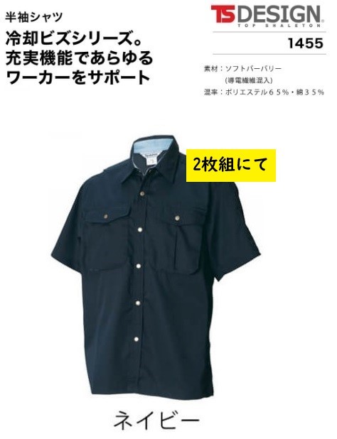 ビックイナバ特価◇TSDESIGN 1455[春夏]半袖シャツ【42ネイビー・LLサイズ】ソフトバーバリー生地・定価1枚8360円の品、2枚即決2980円