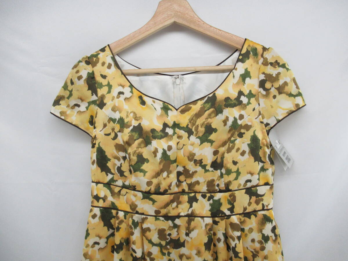 【送900円】161 タグ付き peyton ペイトン 花柄プリントワンピース フレンチスリーブ 総柄 L デコルテネック ファイブフォックス