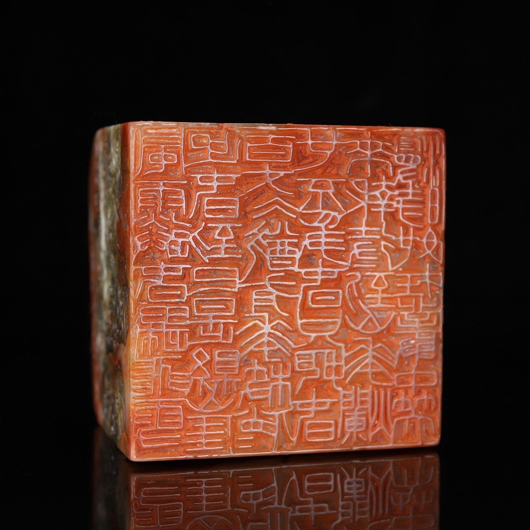 唐物 [民國篆刻家 韓登安]寿山石 朱砂紅 果凍料 盤龍閑章 印鑑 天然石 手彫 篆刻 古印材 極細工 古美術品 中国古玩 骨董品 D67