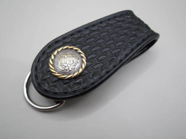 サドルレザー バイカー アメリカンバイク ハーレー「ブラック ウエスタンB 」ベルトループ キーホルダー  キーリング  ウォレットチェーン ロッカー  ハンドメイド シンプル 本革