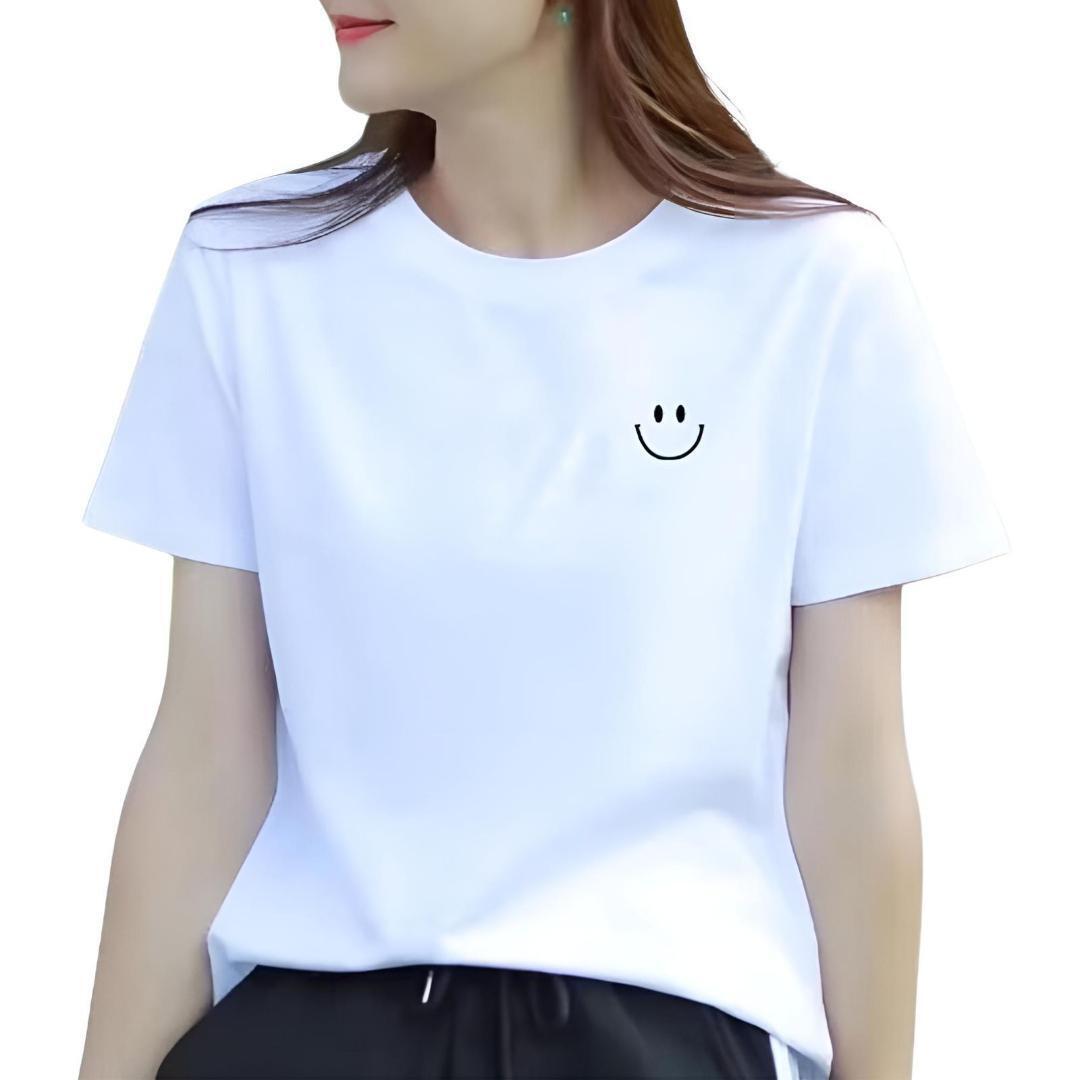 大人可愛い!主役Tシャツ シンプルなホワイトベースに、立体感のある可愛いプリントされた半袖Tシャツ。