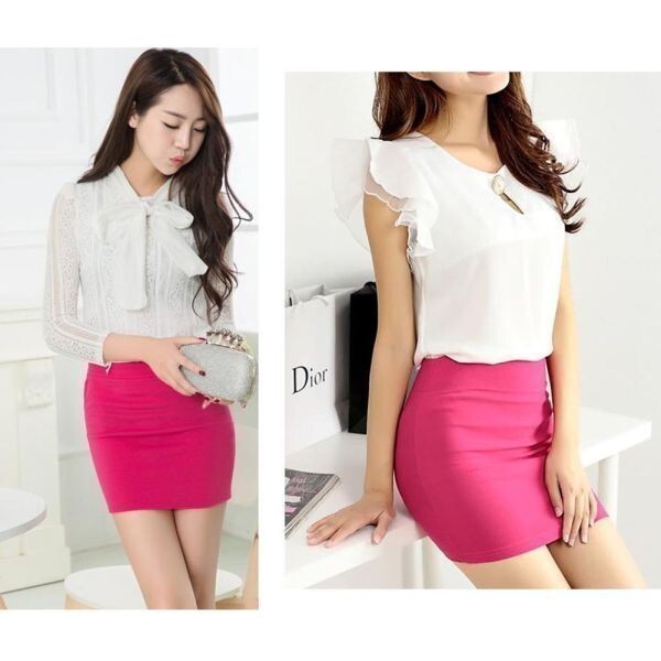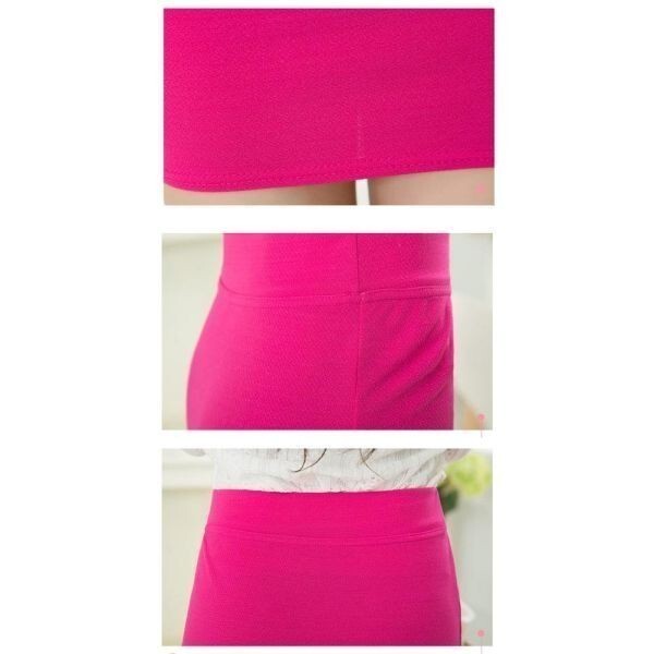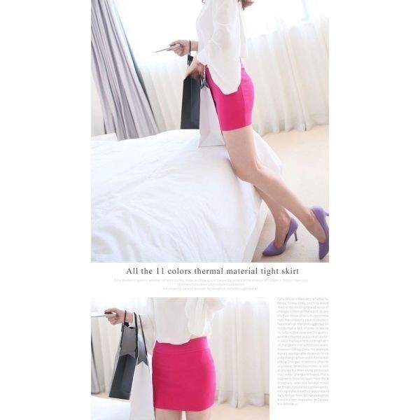 タイトスカート ショート丈 ストレッチ 無地 膝上 レディース ウエストゴム 美脚 ひざ上 フリーサイズ ホットピンク