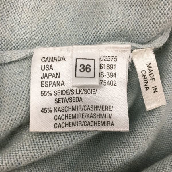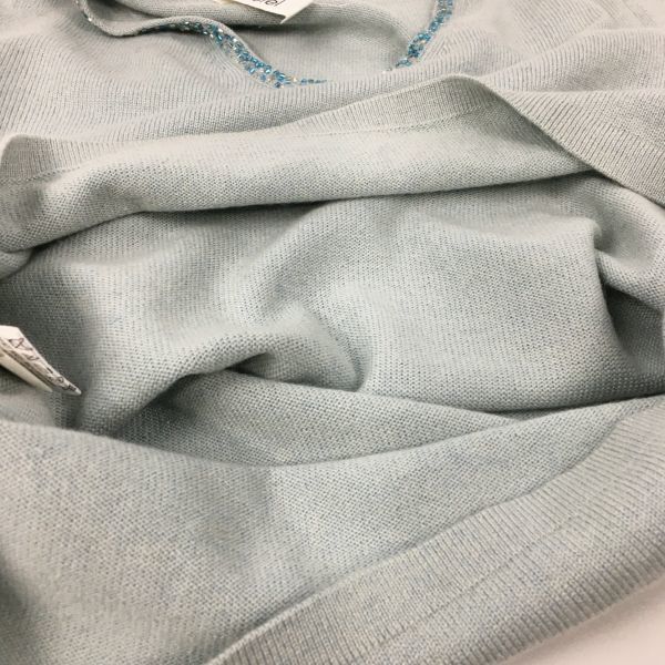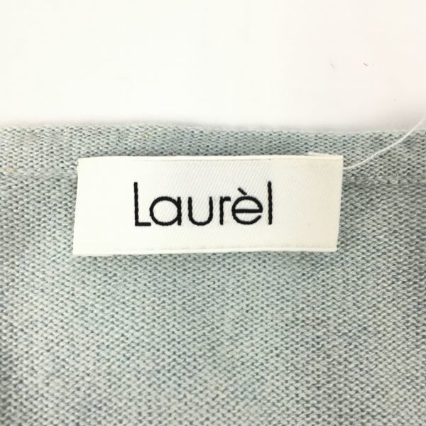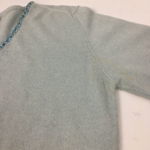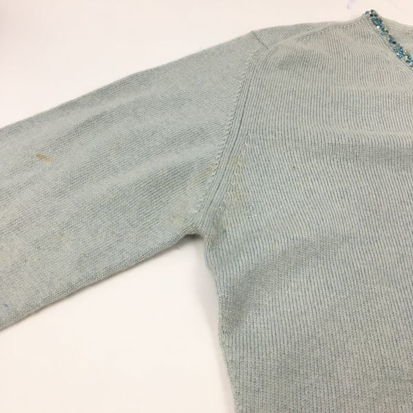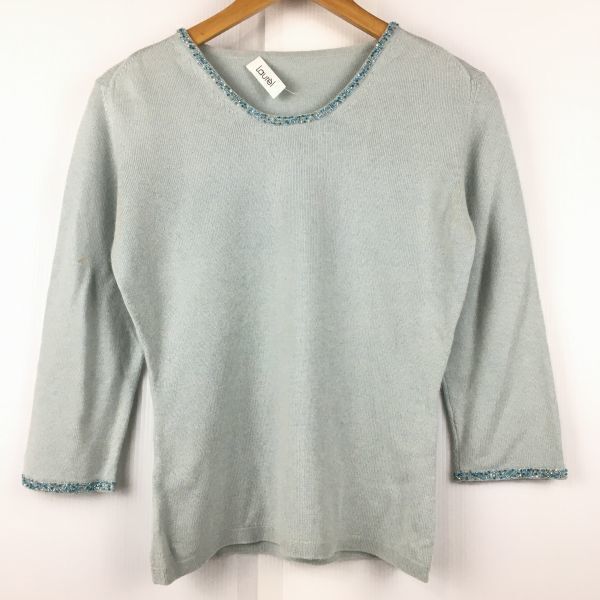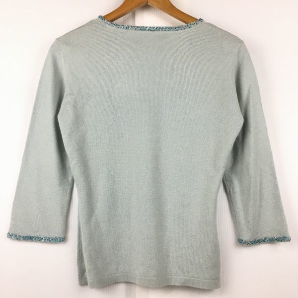 Laurel/ローレル シルク55%&カシミア45%/丸襟セーター/7分丈 サイズ36 ミント/薄緑 ビーズ装飾 管NO.A7-59