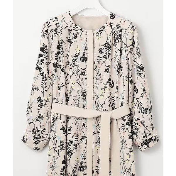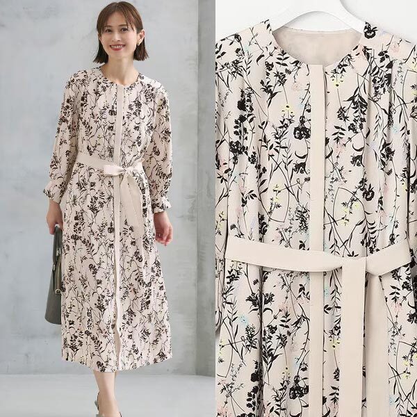 自由区【洗える】ハーバルフロープリント8分袖 ワンピース(サイズ40・Lサイズ)シャンパンベージュ・新品