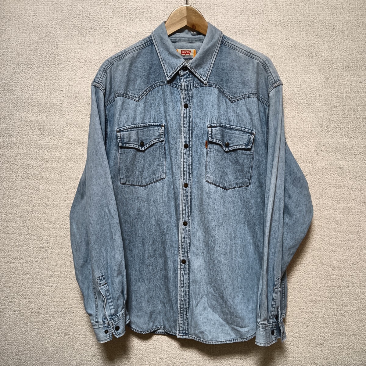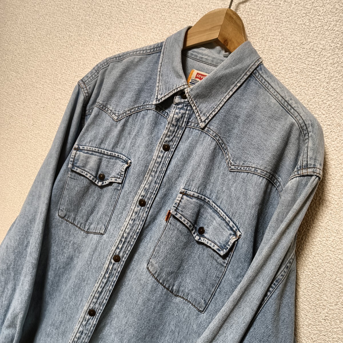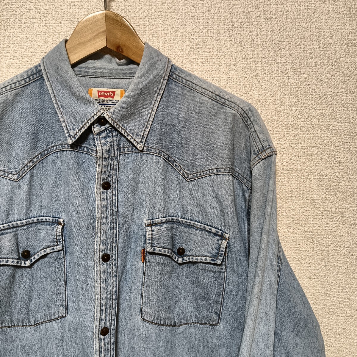 希少★90's VINTAGE OLD Levi's 60606-5315 デニムウエスタンシャツ 開閉スナップボタン オレンジタブ インディゴ ライトブルー 青系 メンズ サイズL ヴィンテージ オールド リーバイス アメカジ レア 古着 USED
