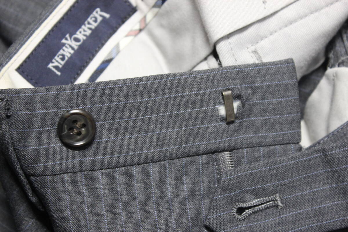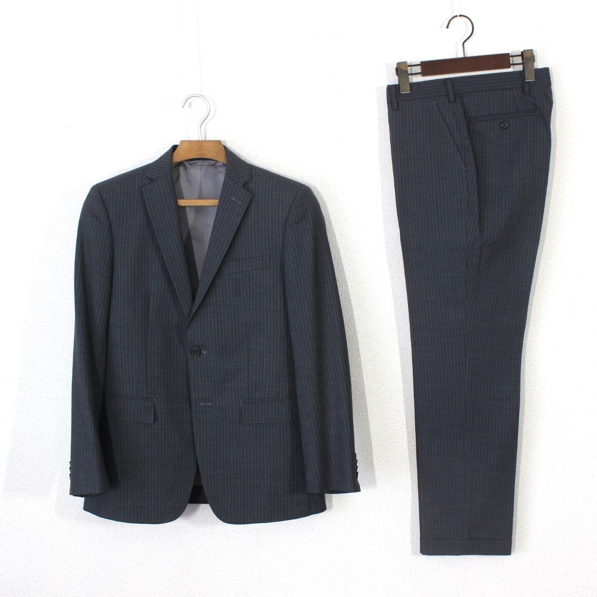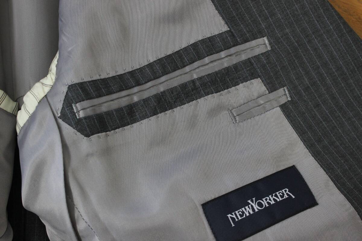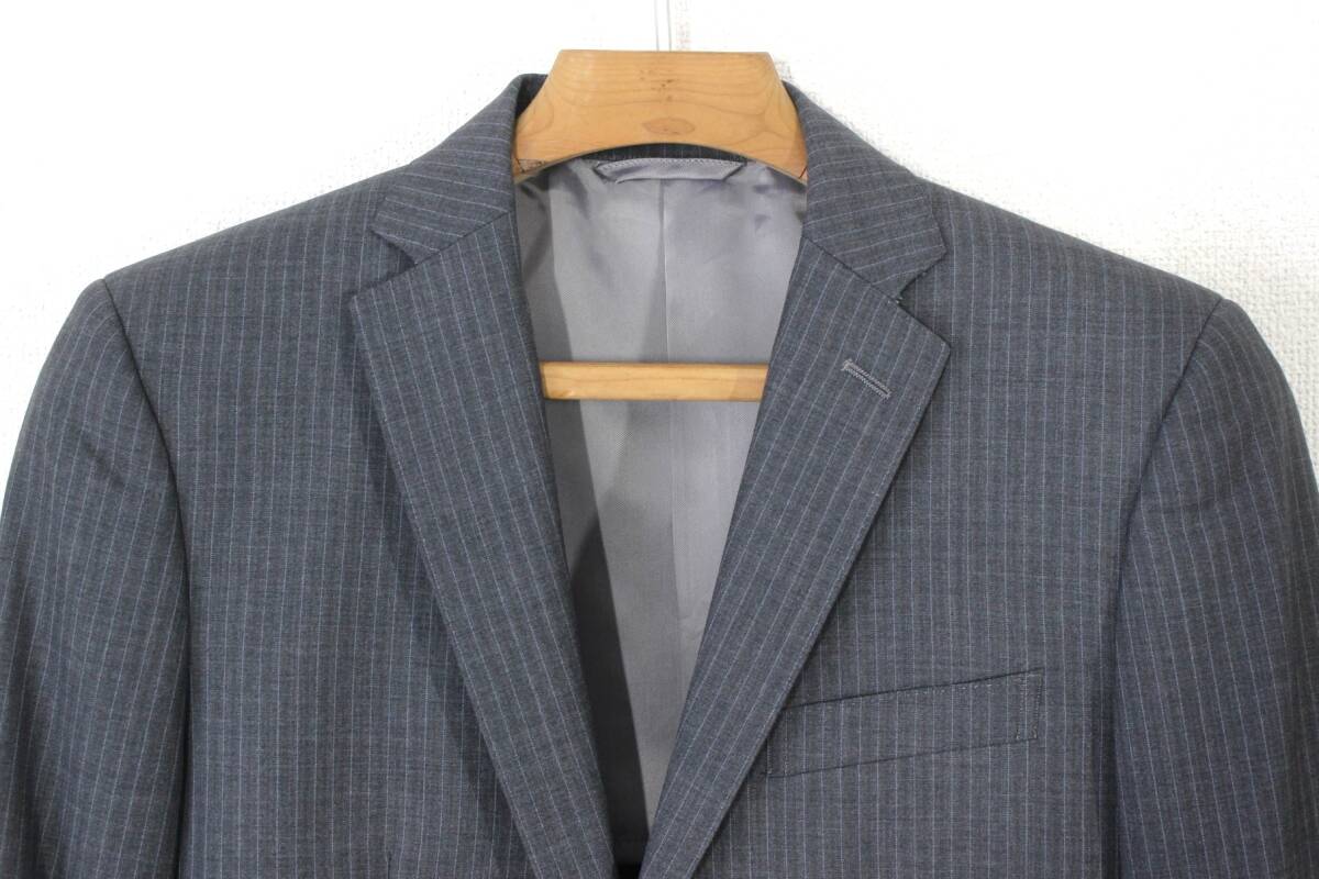 51【美品】ニューヨーカー スーツ A5 メンズ M グレー ストライプ 面接 ビジネス 入学式 tqe NEW YORKER 春夏秋 ★美品★