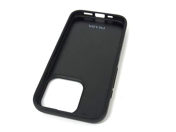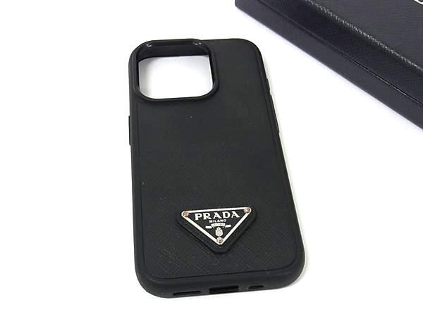 ■美品■ PRADA プラダ サフィアーノレザー iPhone14Pro 対応 アイフォンケース スマホケース レディース メンズ ブラック系 BK9577