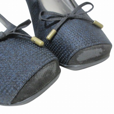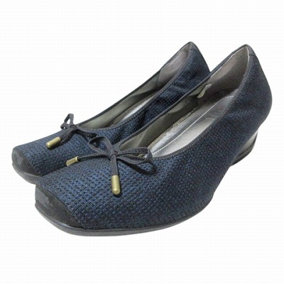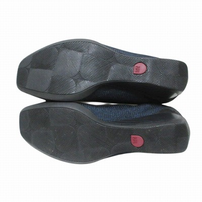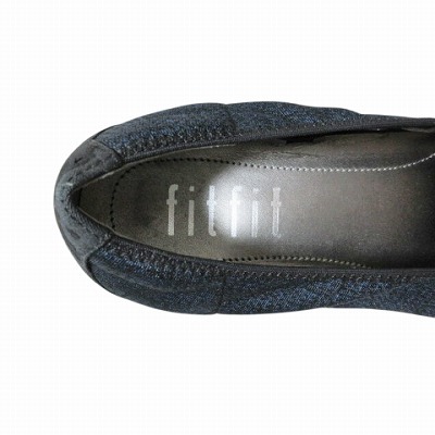 フィットフィット fitfit バレエパンプス ウォーキングシューズ リボン 切替 靴 23.0cm 紺 ネイビー ■MET1 X レディース