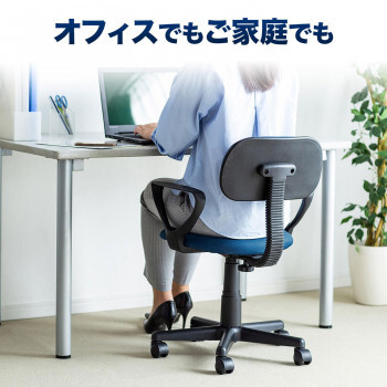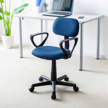 仕様 | カラー:ブルー 耐荷重量(座面):80kg 機能:ガス圧リフト装置、背もたれチルト、背もたれ前後調節、肘かけ付き |