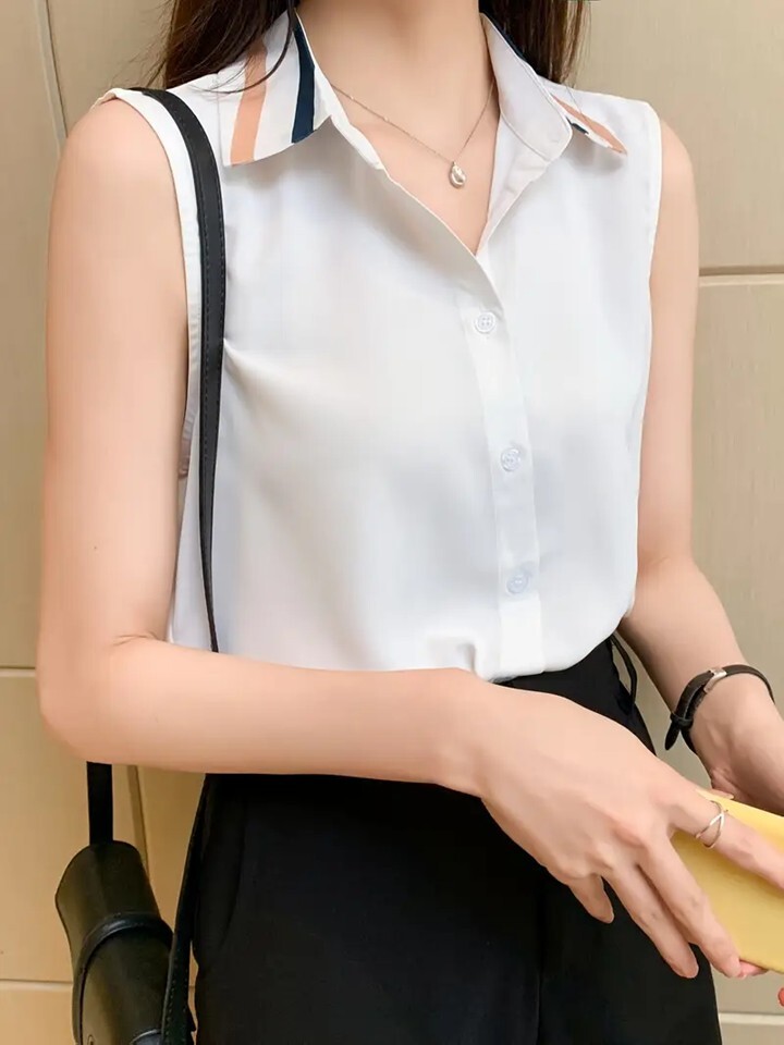 ★ レディース シンプル シフォン ノースリーブ ブラウス XL サイズ | |||