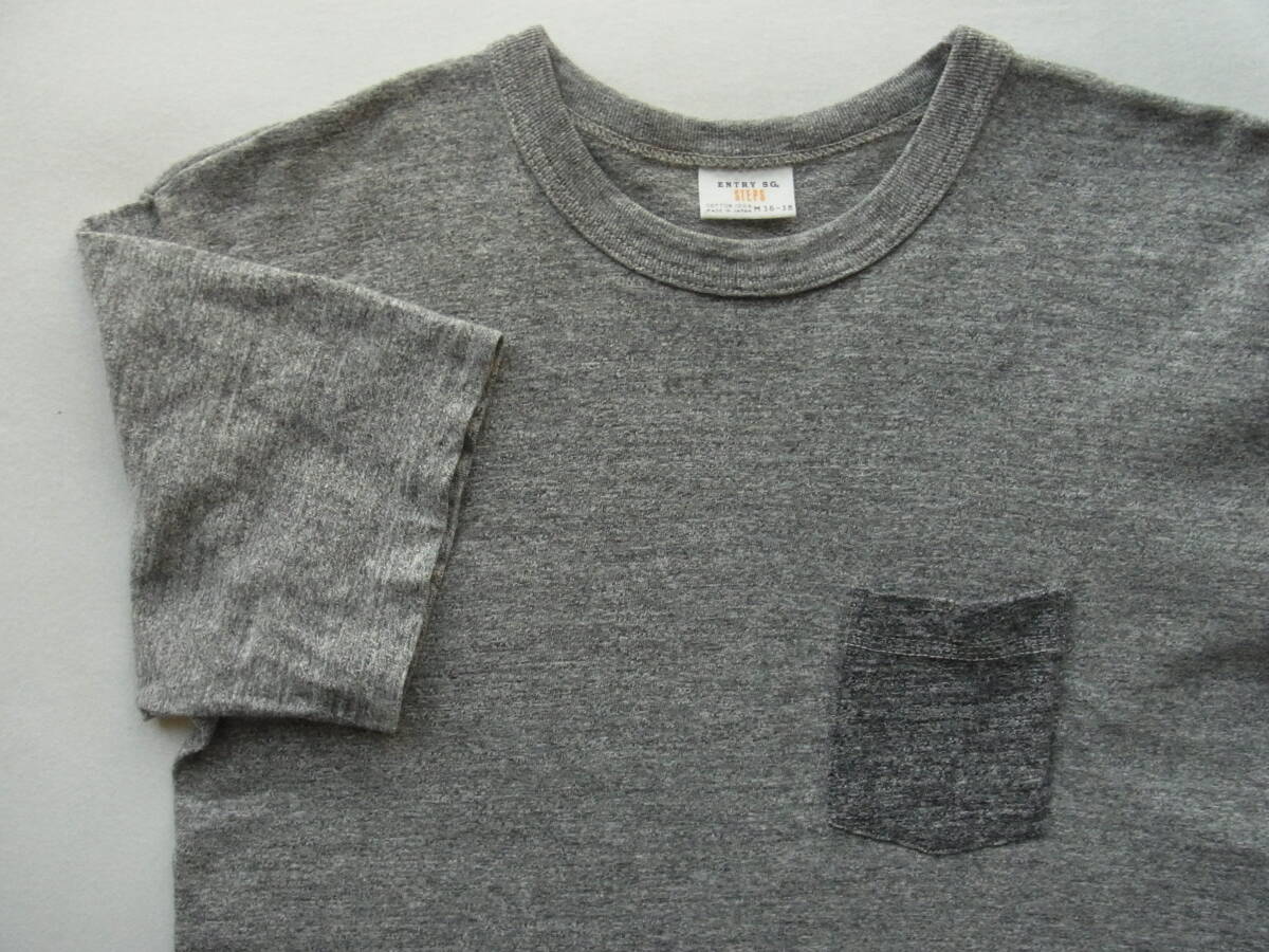 ENTRY SG, エントリー エスジー ポケット付きTシャツ サイズ M 日本製   杢グレーの濃淡