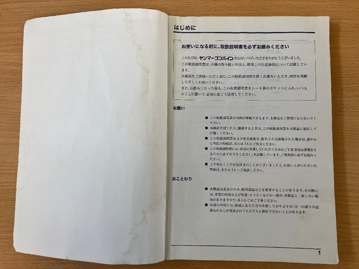仙台発 ヤンマー 中古 コンバイン AG460.470.572 取扱説明書【MYG】 | |